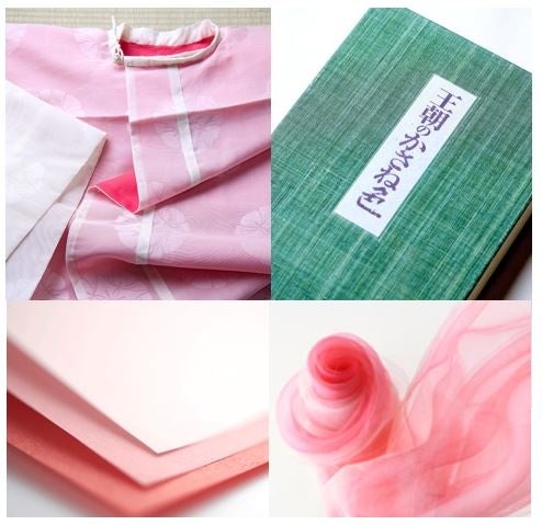 平安王朝の優美な衣装、十二単(じゅうにひとえ)の美しい色合わせに、表に「白」の透ける薄絹、中に「紅色」を重ねて透きとおるような春の桜色を表現する「桜の重」というかさね色がありました。
