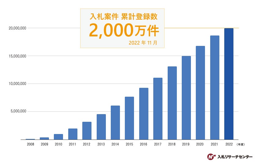 ■官公庁の入札マーケットが年々成長を続ける中、入札案件の累計登録件数が2,000万件を突破