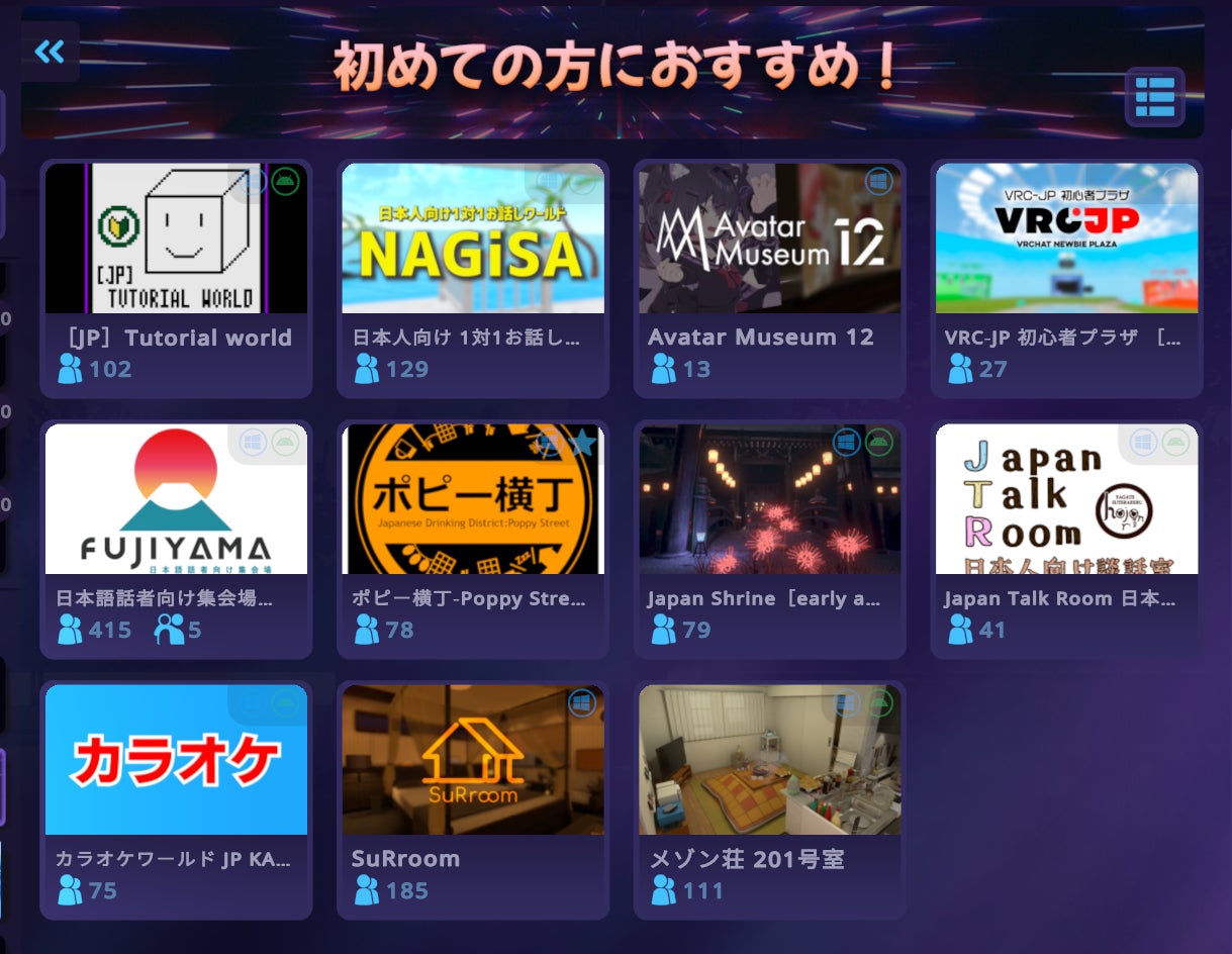 『VRC-JP 初心者プラザ』は、VRChat内ワールドカテゴリの「初めての方におすすめ!」にも掲載されており、お気に入り登録数が2.7万を超えたVRChatを始めたばかりの方も安心して参加できるワールドです。