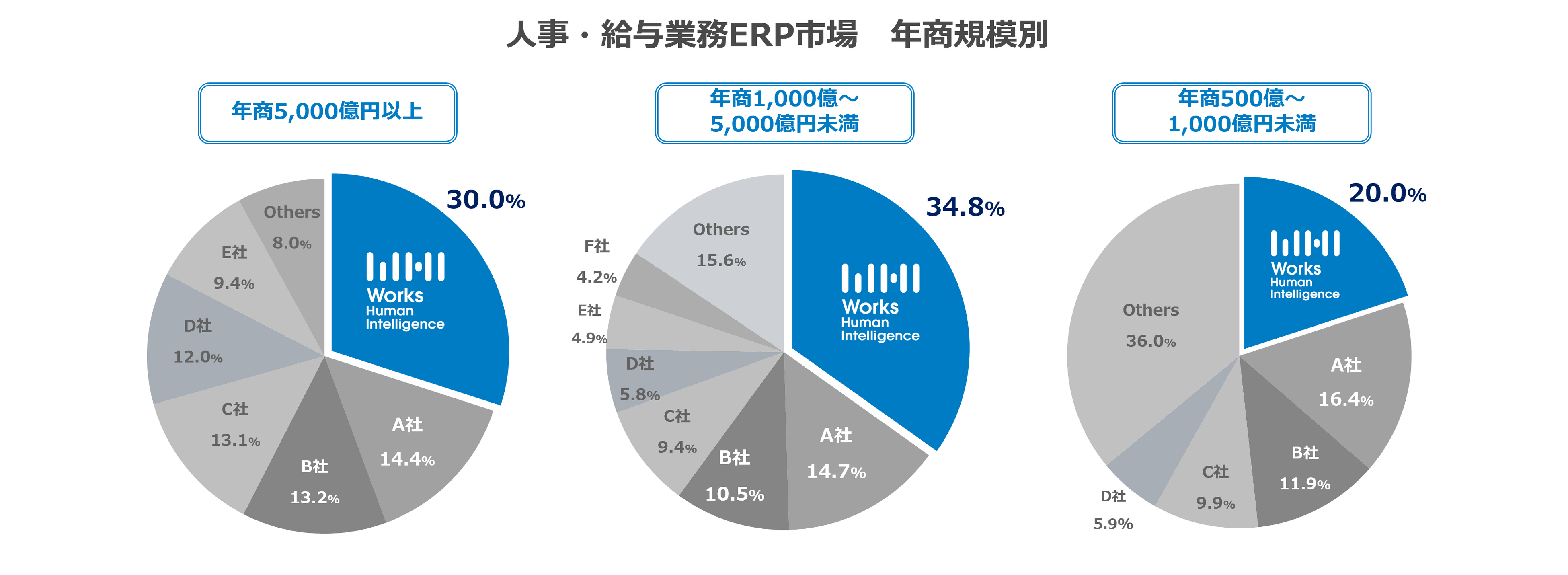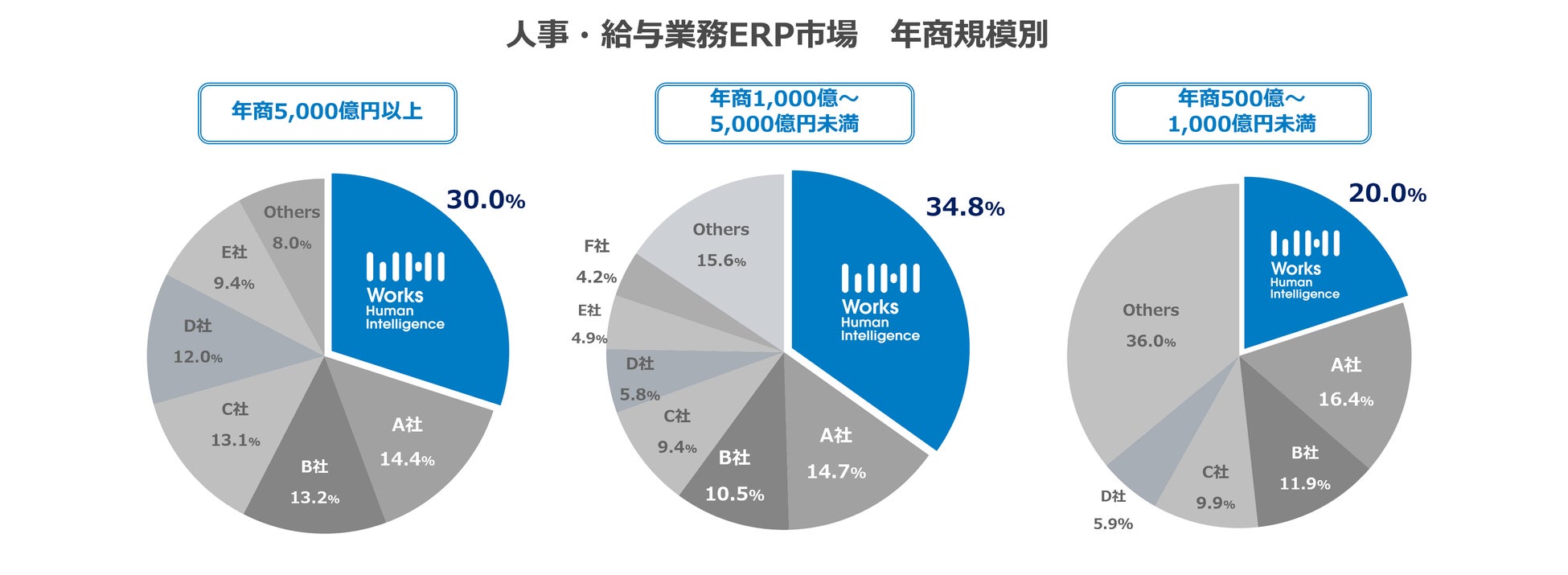 なお、人事・給与業務ERP市場の年商規模別「5,000億円以上」、「1,000億~5,000億円未満」、「500億~1,000億円未満」でも、2021年度ベンダー別売上金額シェア1位を獲得しています。