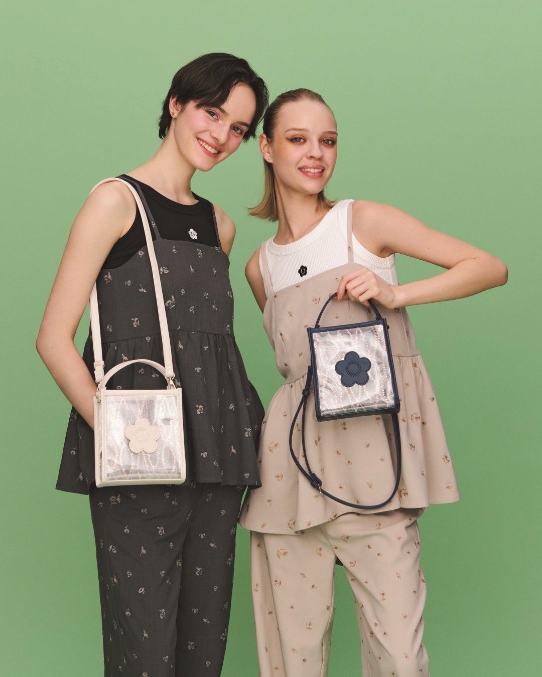 レトロポップな配色が魅力の透かし編みニットや、ナチュラルな風合いのラフィア素材バッグなど、夏らしさを存分に楽しめるアイテムがラインナップ。また、日差しを浴びて輝くシルバーカラーの小物や、涼しげなクリアアクセサリーが、夏ムードを一層盛り上げます。