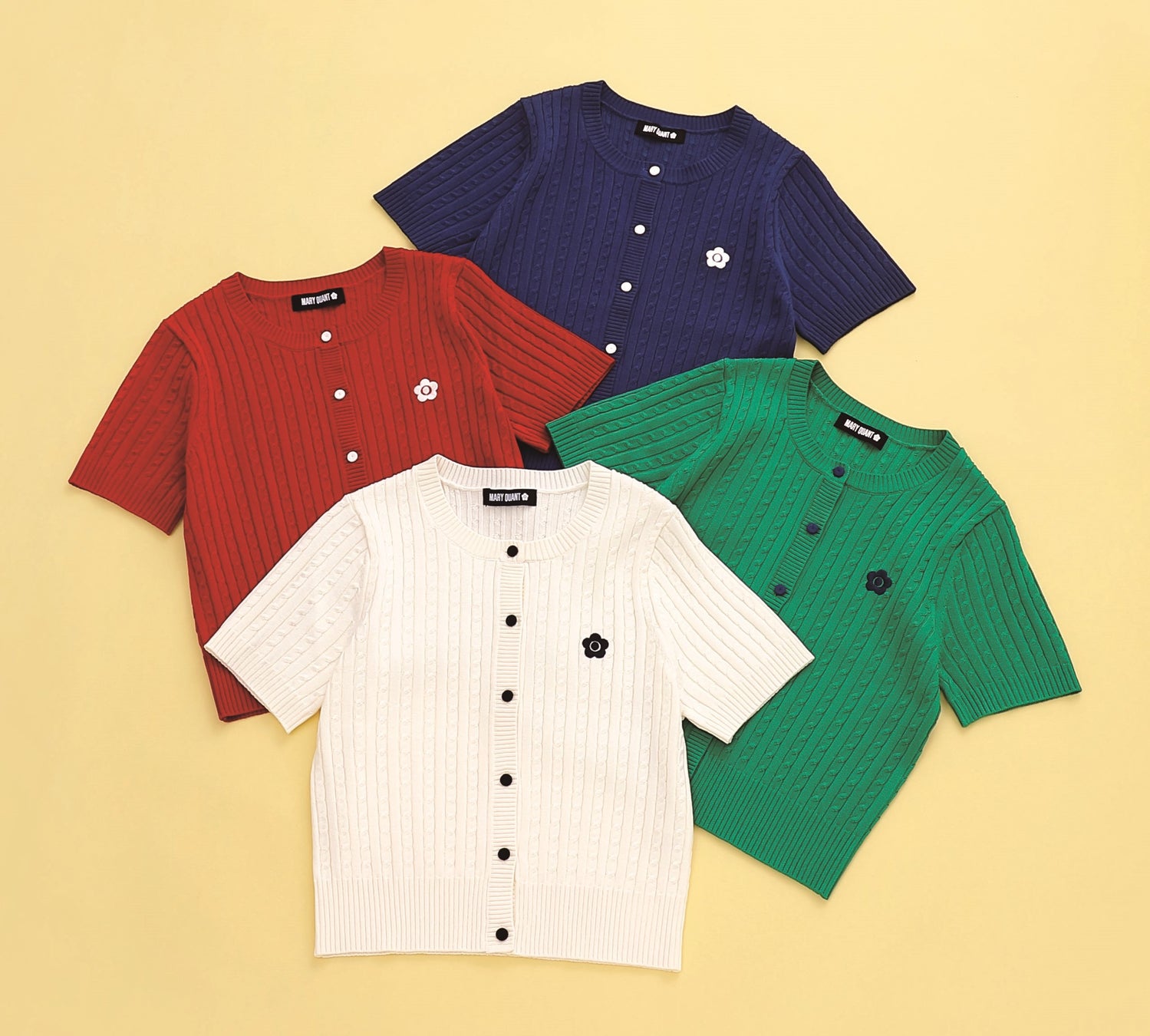・デイジーワンポイント半袖ケーブル カーディガン 各\9,900