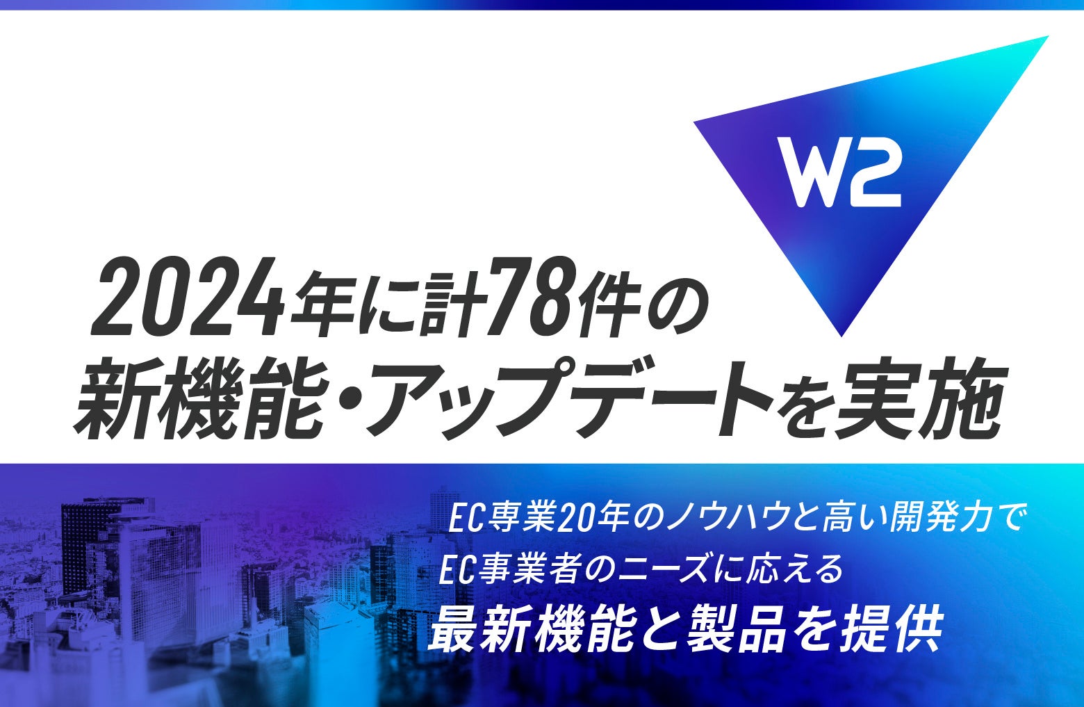 最先端ECプラットフォームを展開するW2株式会社(本社:東京都中央区、代表取締役:山田大樹、以下W2)は、2024年に計78件の新機能開発・アップデートを実施しました。これにより、お客様の利便性を大幅に向上させるとともに、サイトユーザーの利用体験を改善し、EC事業の売上向上および運営効率化に貢献したことをお知らせいたします。