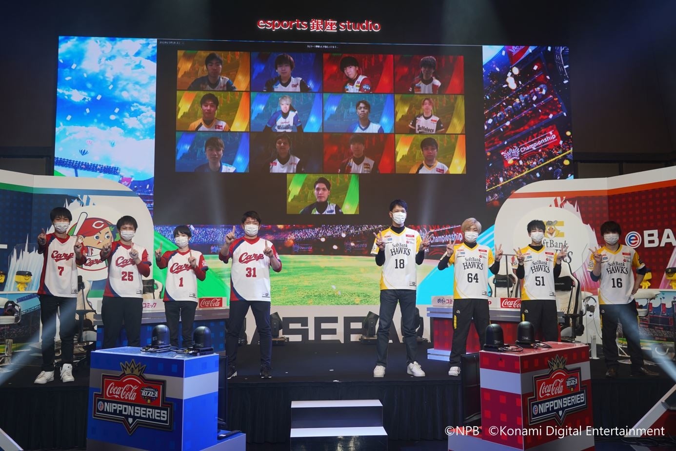 一般社団法人日本野球機構(NPB)と株式会社コナミデジタルエンタテインメントが共催する、モバイルゲーム『プロ野球スピリッツA』を競技タイトルとしたプロ野球eスポーツリーグ「eBASEBALLプロスピAリーグ」2021シーズンの 「コカ・コーラ e日本シリーズ」が1月22日(土)に開かれました。 eペナントレースのセ・パ上位3チームで争った「コカ・コーラ eクライマックスシリーズ」を制した、セ・リーグ広島、パ・リーグソフトバンクが「コカ・コーラ e日本シリーズ」で闘いました。