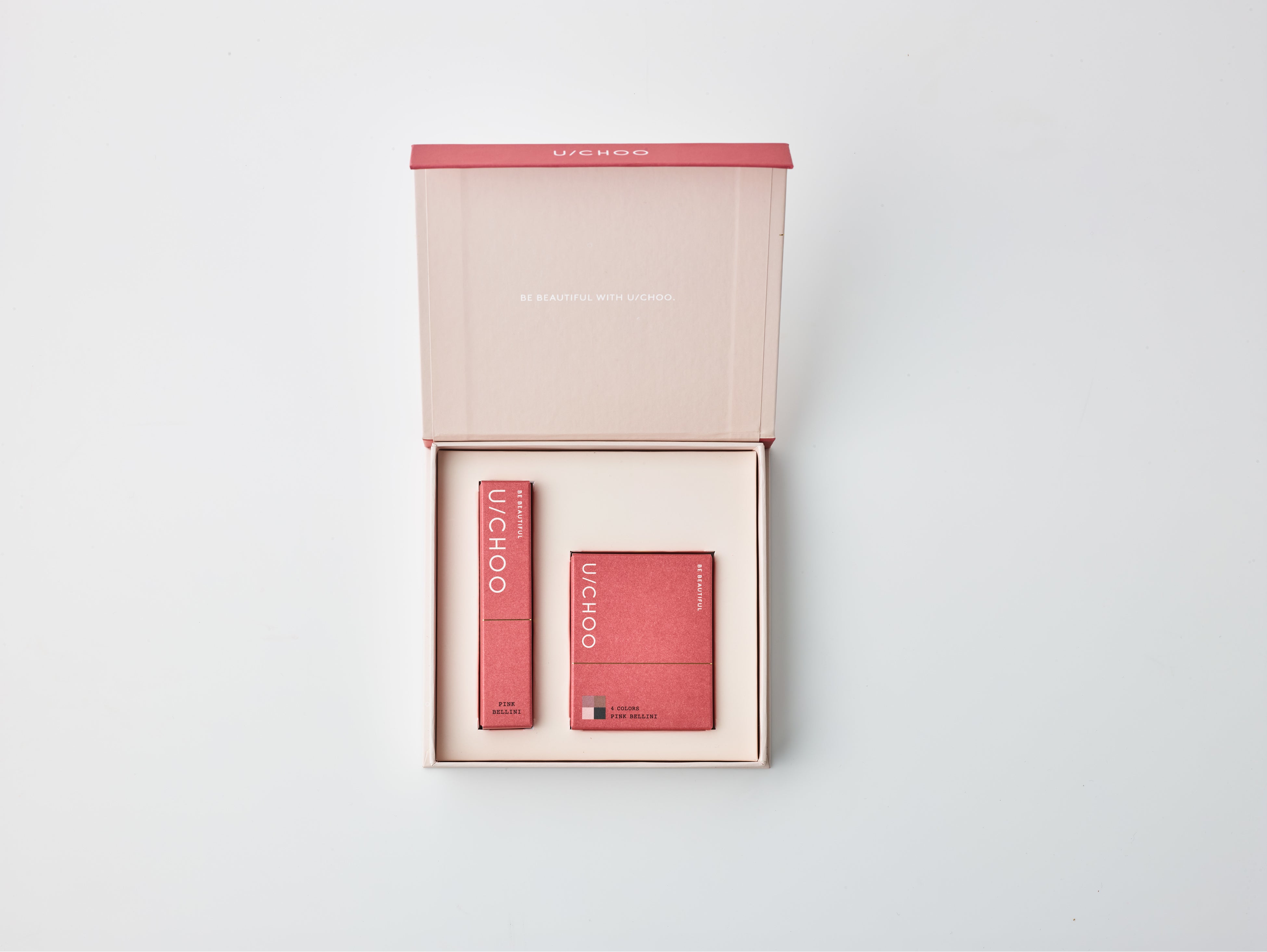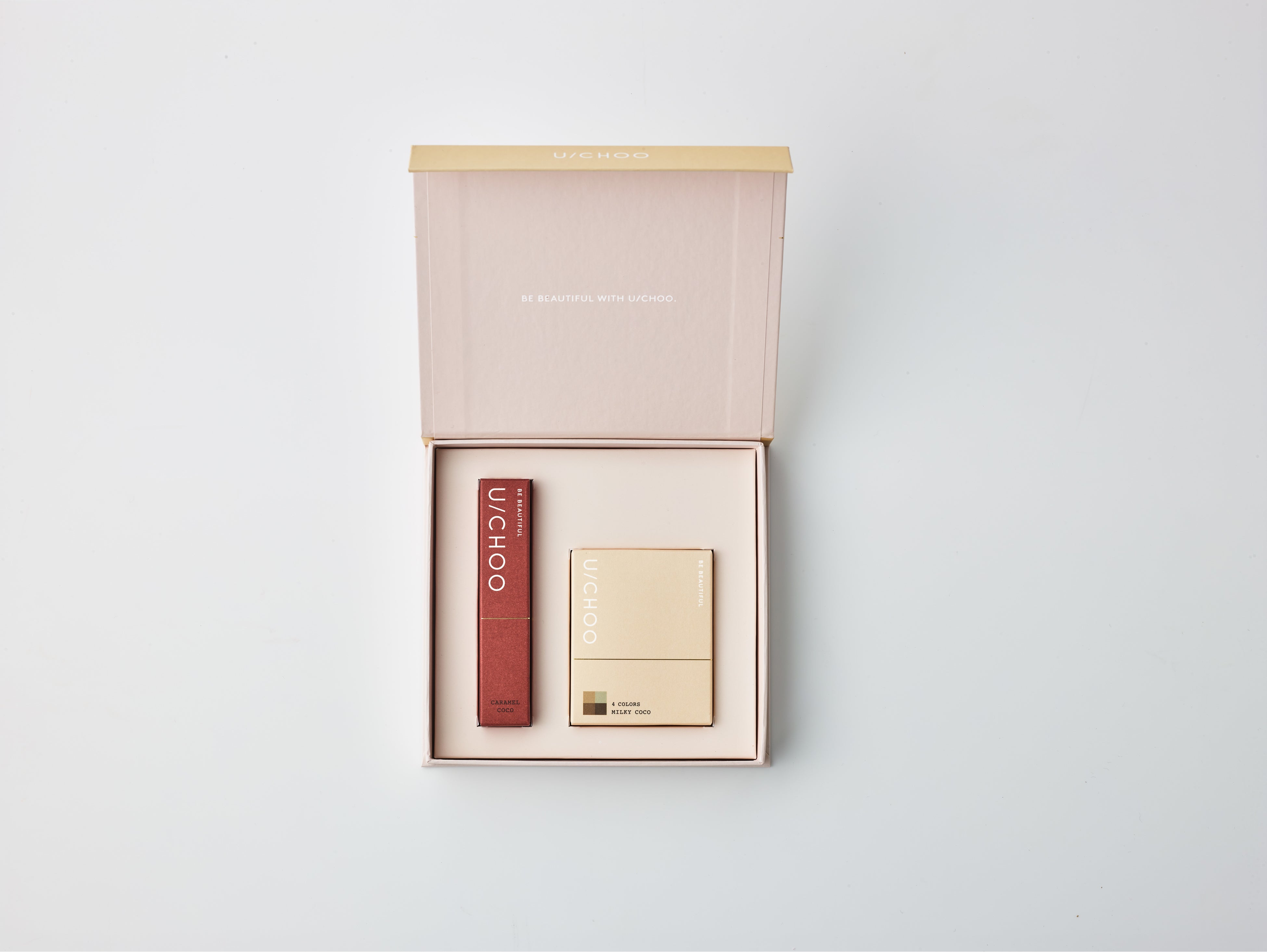 また今回の発売を記念し、新色のアイシャドウ・リップティントがセットになった2種類のセットBOXを公式サイト限定にて発売いたします。さらに新色のセットBOXを2箱以上同時にご購入頂いたお客様に先着数量限定にてノベルティの『U/CHOOオリジナルポーチ』をプレゼントいたします。この機会にぜひ、宇野実彩子(AAA)のこだわりが詰まった『U/CHOO』で、落ちにくい “旬顔メイク”をお楽しみください。