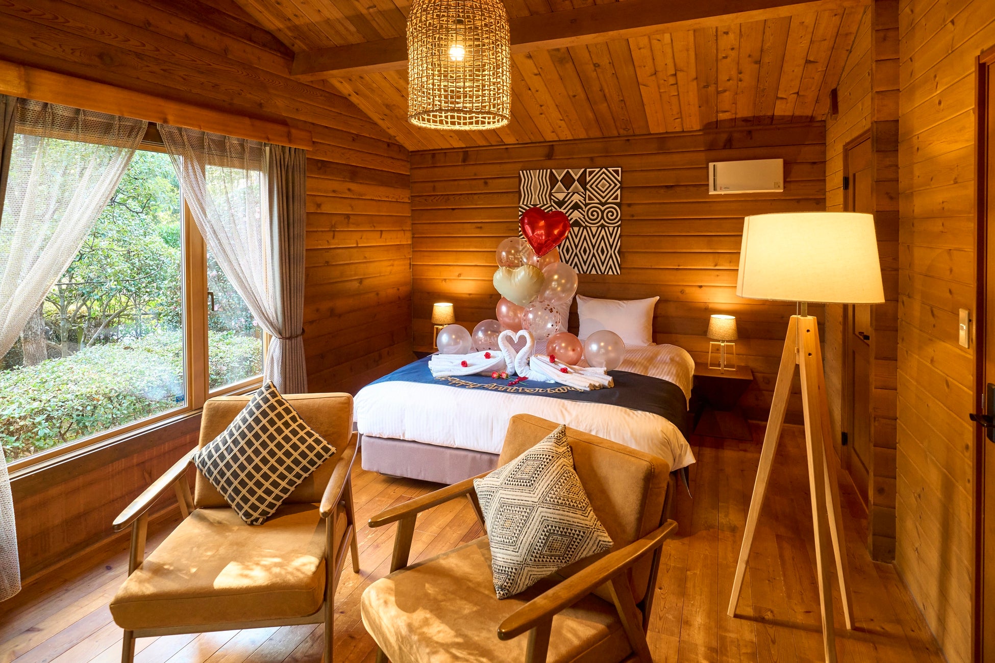 リソルの森のグランピングエリア「グランヴォー スパ ヴィレッジ」では、バレンタイン・ホワイトデーシーズンに合わせて、ロマンティックな宿泊プラン「大切な人へ贈るスイートなふたり旅」をご用意しました。