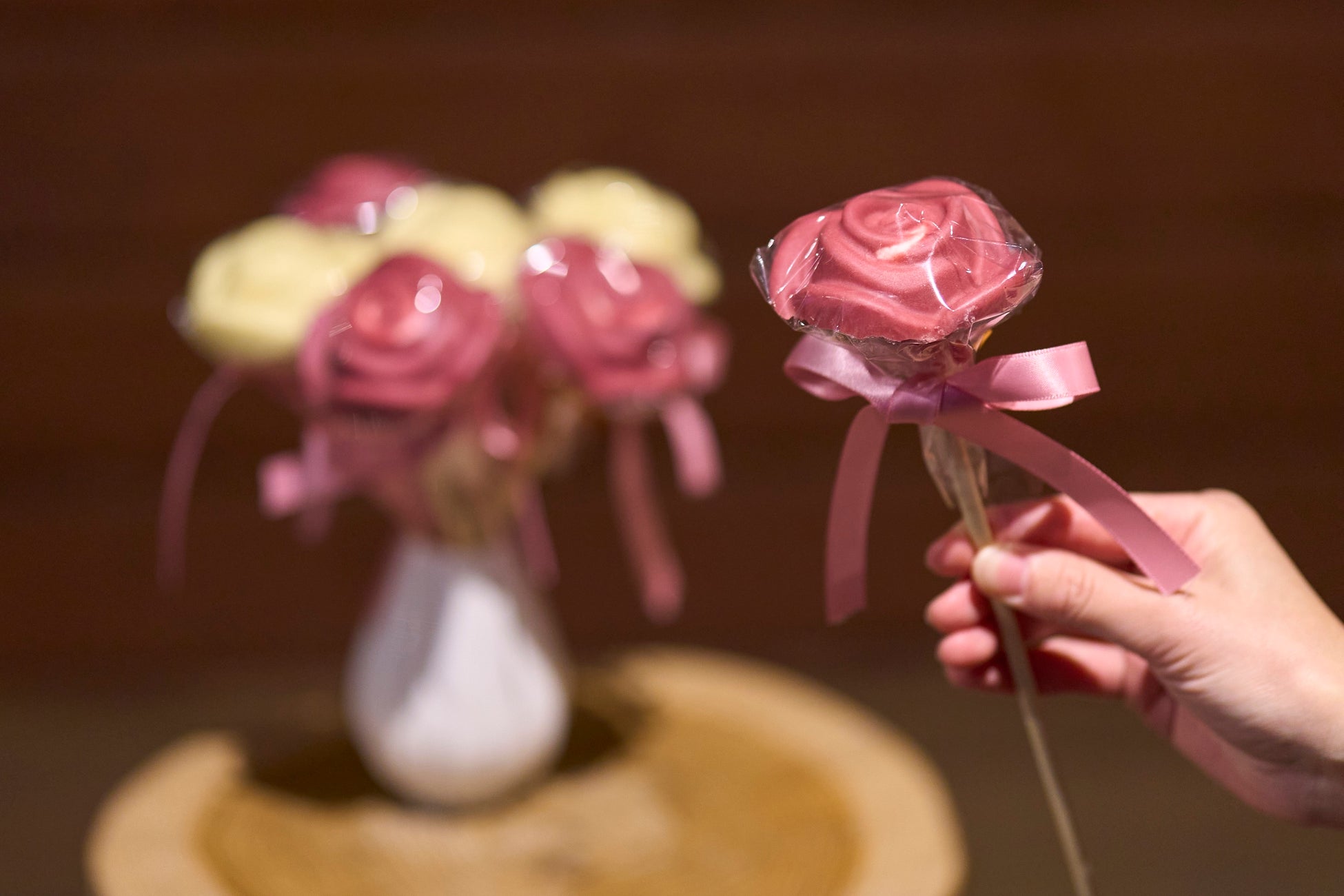 ホテルパティシエが手掛けた見た目も華やかなスイーツ「薔薇のチョコマシュマロ」をプレゼント。