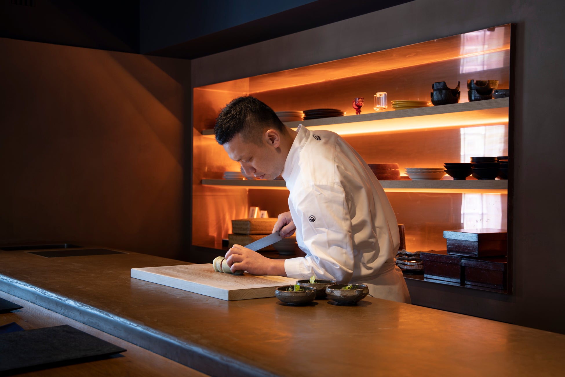 日本料理界を牽引する京都の料亭「菊乃井」で 17 年務める。2018年独立、その後東京・青山で 「てのしま」を開く。国内外で日本料理普及につとめる。店名の由来は主人の本家がある瀬戸内海に浮かぶ離島「手島」から。