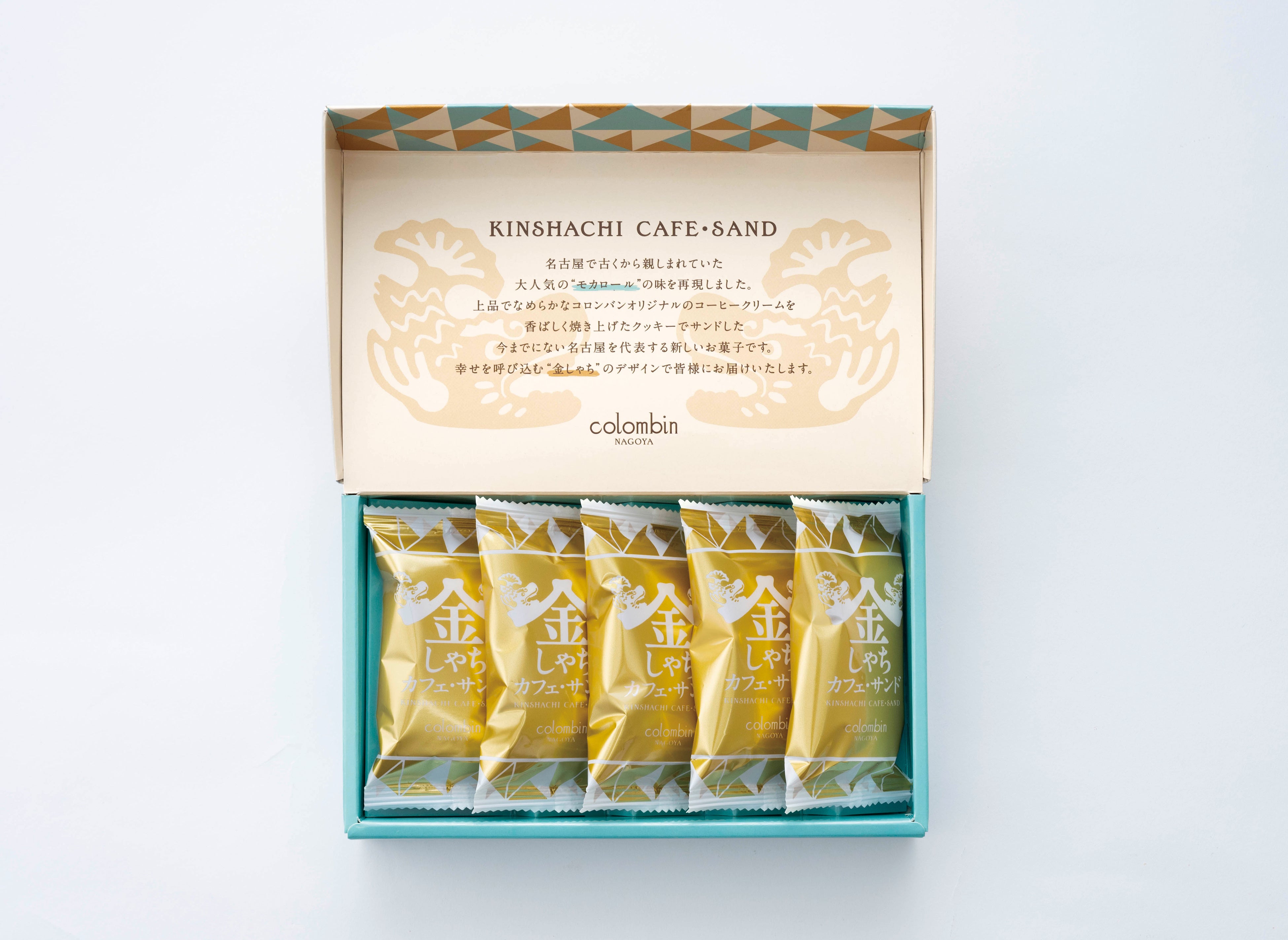 名古屋で古くから親しまれていた大人気の「モカロール」の味を再現し、幸せを呼び込む“金しゃち”のデザインで皆様にお届けする「金しゃちカフェ・サンド」。上品でなめらかなコーヒークリームをサクサクのクッキーでサンドした今までにないお菓子です。