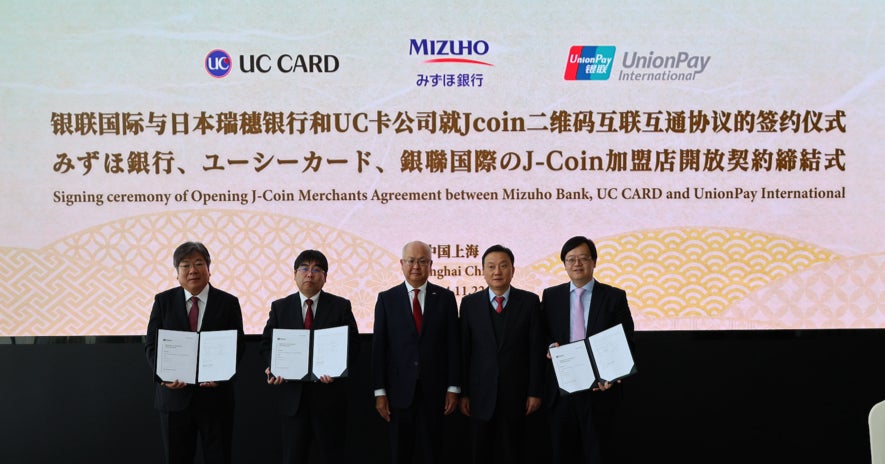 株式会社みずほ銀行が提供する、スマホコード決済サービス『J-Coin Pay(ジェイ コイン ペイ)』は、2024年11月22日にユーシーカード株式会社および銀聯国際と、銀聯QRユーザーへのJ-Coin Pay加盟店開放に関する提携契約を締結いたしました。