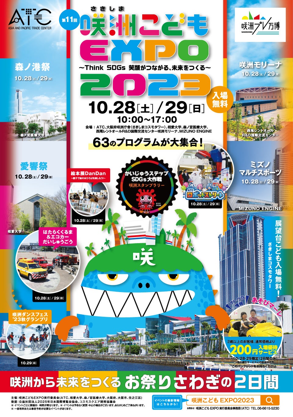 主催: 咲洲こどもEXPO実行委員会(大阪府・大阪市・住之江区・相愛大学・森ノ宮医療大学・アジア太平洋トレードセンター株式会社)