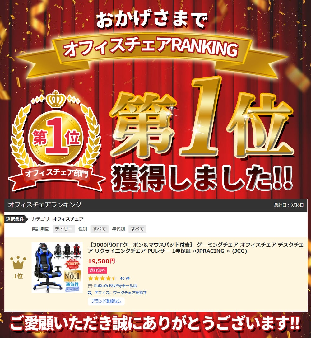 ゲーミングチェア「JPRACING」公式サイトが登場!初回注文3,500円OFFクーポン券をプレゼント!