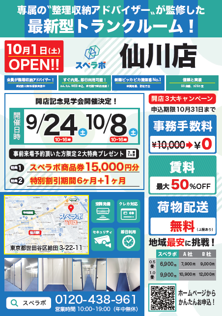 【10月1日(土)オープン】見学から契約、解約まで完全非接触・非対面、お申し込みからご利用まで最短1時間!都内にて絶賛運営中のトランクルーム【スペラボ】が世田谷区給田に出店!