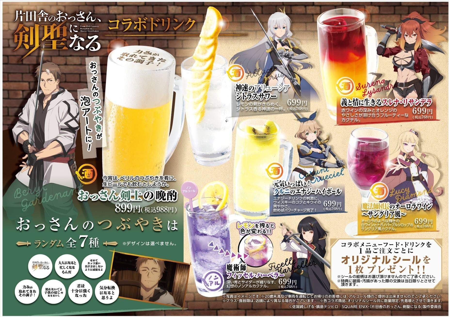 海鮮居酒屋「はなの舞」「さかなや道場」を全国展開するチムニー株式会社(東京都墨田区)は2025年6月26日(木)より「まるごと北海道 花の舞 UENO3153店」「はなの舞 池袋西口公園前店」「さかな酒場 魚星 立川北口店」「さかなや道場 谷町四丁目駅前店」の4店舗にて、TVアニメ『片田舎のおっさん、剣聖になる』とのコラボレーションキャンペーンを開催いたします。