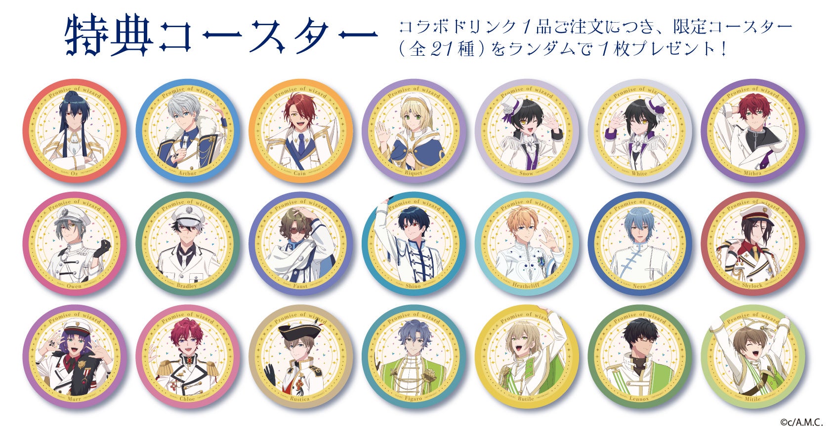 ドリンクを1杯ご購入いただくと、コラボ限定コースター(全21種)をランダムで1枚プレゼントいたします。