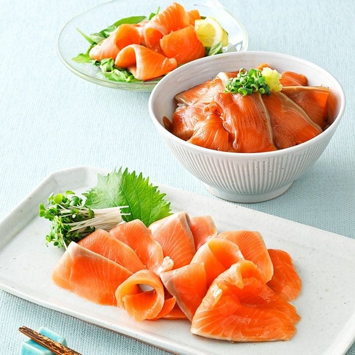 活〆により高い鮮度を誇る、養殖銀ザケの最高級ブランド「みやぎサーモン」。とろけるような身質はそのままに、桜チップで低温燻製したスモークサーモンは芳醇かつ生食感が楽しめ、自家製ダレが絡む漬けはご飯が進む一品に。スライスの厚みも程よく食べ応え抜群。