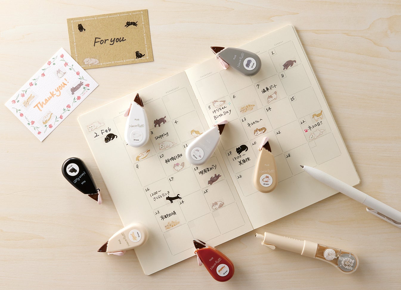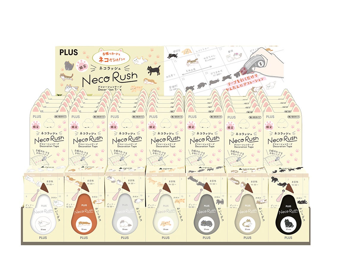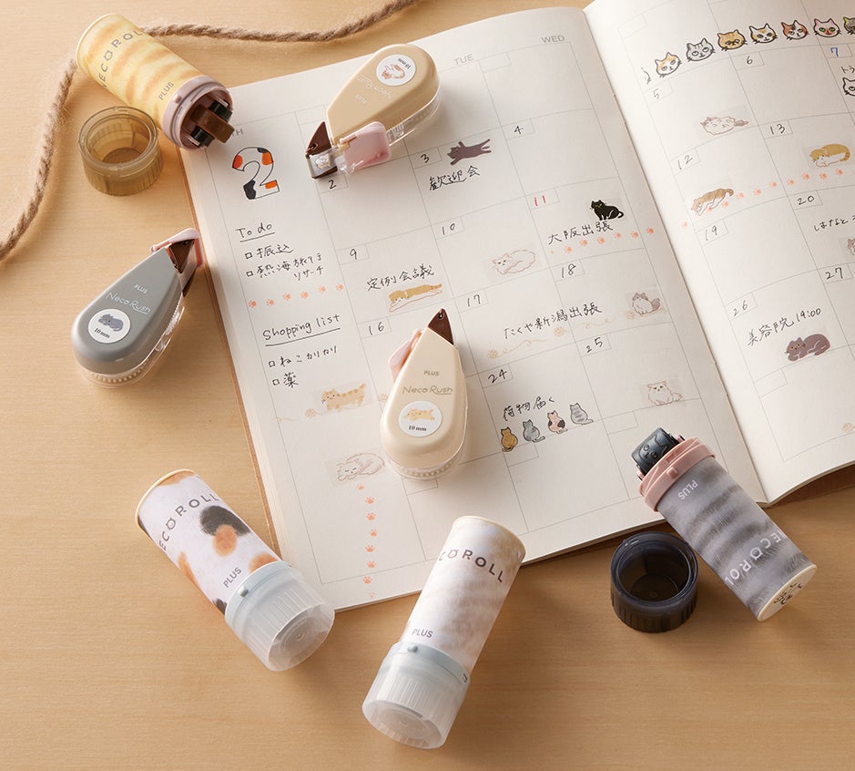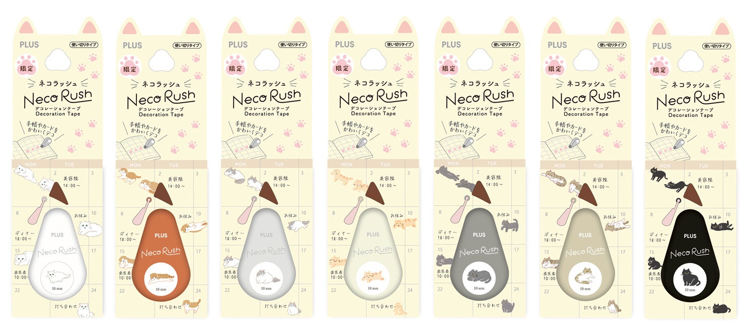 プラス株式会社(東京都港区 代表取締役社長 今泉忠久)は、手帳やカードをかわいく飾れるデコレーションテープ「デコラッシュ」シリーズから、「デコ」と「ネコ」の響きが似ていることから生まれたパロディブランド、デコレーションテープ「<限定>ネコラッシュ」(7種類)を、2026年2月22日の「猫の日」に合わせて発売します。