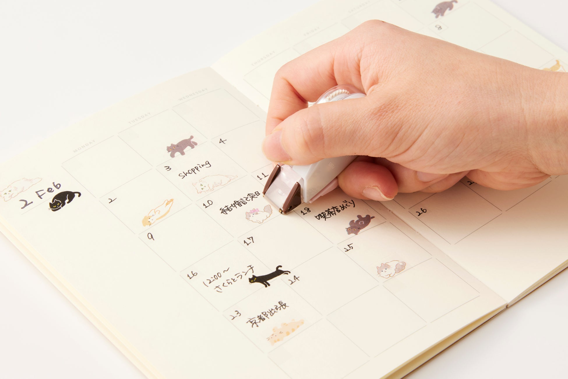 大好評いただいている「デコラッシュ日付シート」を、「ネコラッシュ」の発売に合わせて無料配信いたします。「ネコラッシュ」と一緒に使って、手帳やノートのデコレーションにご活用いただけます。配信まで楽しみにお待ちください。