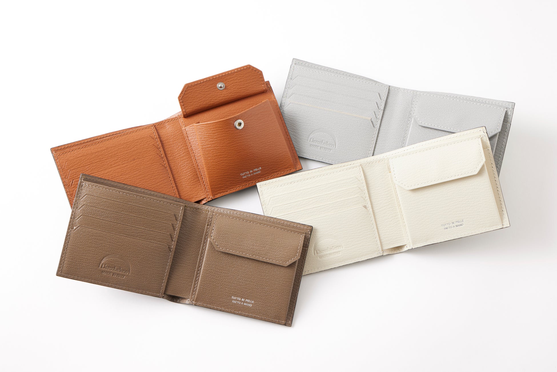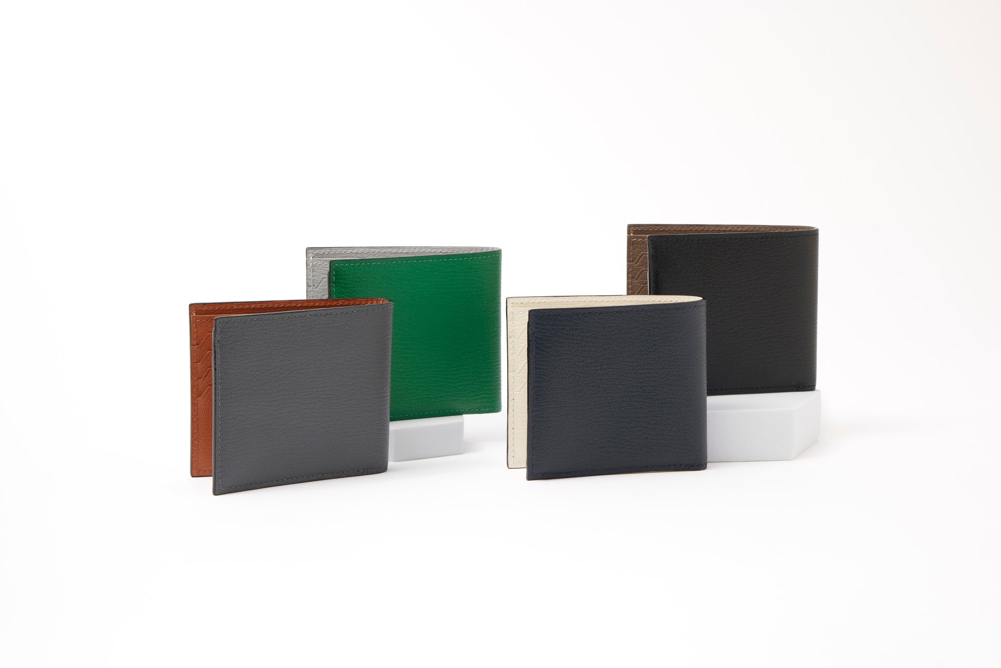まずご紹介するのは、2年ぶりの発売となった「二つ折りウォレット」。以前展開していた際、直営店はもちろん百貨店の紳士売り場でも非常に人気が高かったこちらのモデル。約2年の生産ストップ期間も常に再販希望のお問い合わせが絶えなかった人気モデルです。今回、2年ぶりとなる販売では、カラーラインナップも追加されました(全4色展開)。