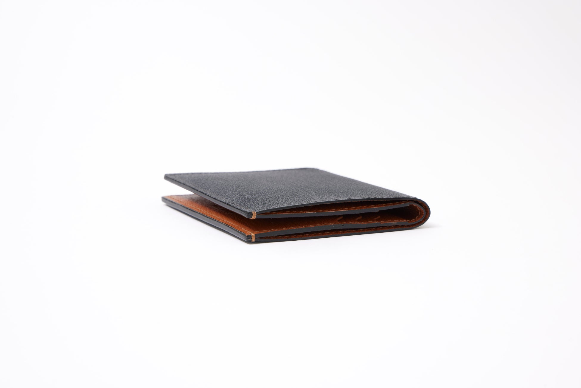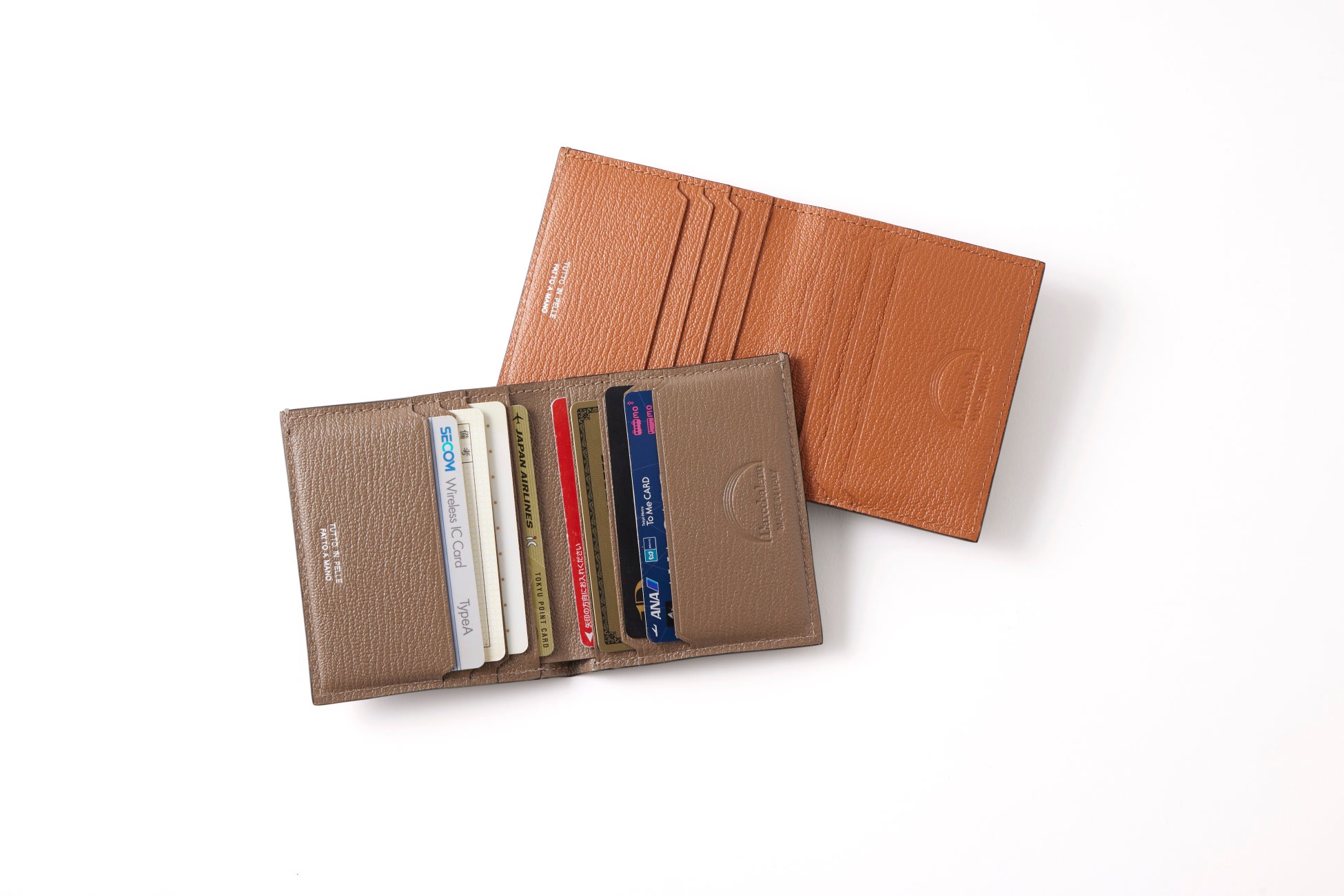 続いても「再販を!」というリクエストにおこたえして登場したこちらのアイテム。「二つ折りカードケース」というネーミングながら、紙幣の収納も可能なのでカードケースというよりはコインケース無しのお財布、といった方がイメージしやすいかもしれません。メンズモデルとしては定番のコインケース無しのお財布。コインケースは別で持ち歩き、お財布自体はすっきりとさせたい、という方や、お財布は常に薄い状態にしておきたい、という方に根強い人気を誇ります。