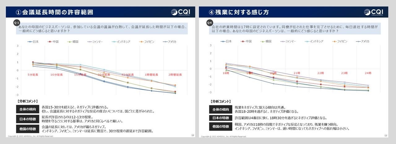 会議の延長に対しては、アメリカが最もネガティブに反応。時間を守ることに対する基準は、日本はアメリカと同じレベルで厳しい。