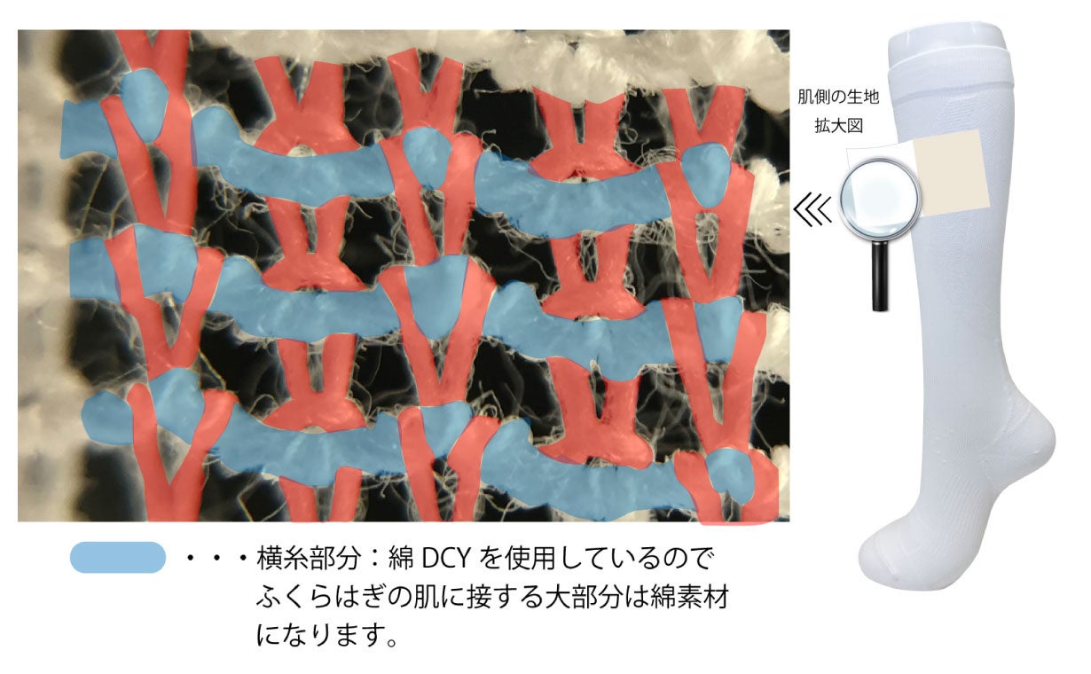 「秒着!あしらく小町」は、消臭効果を持った高機能繊維「ライクラ®T-327Cファイバー」を採用しています。