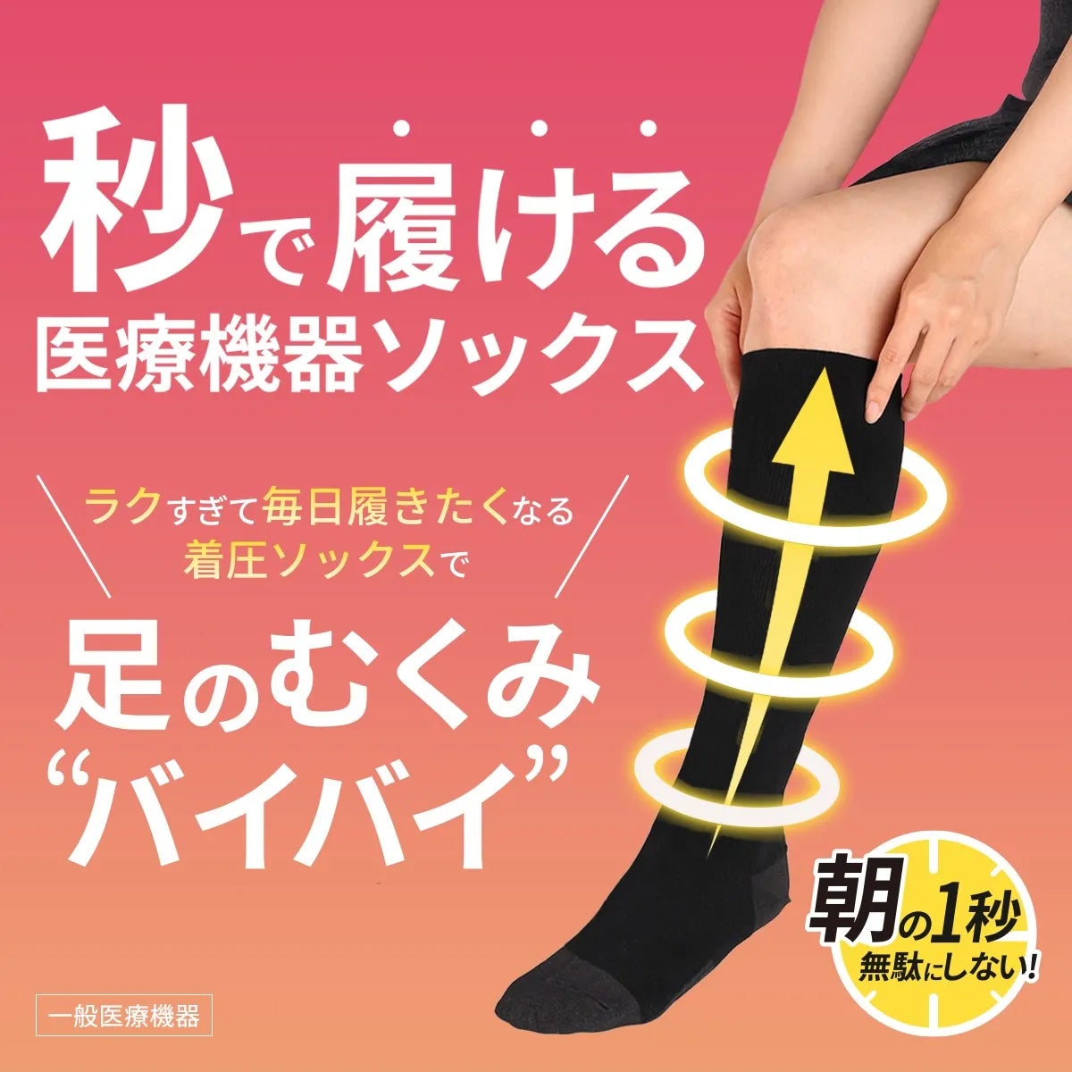 秒で履く医療機器「秒着!あしらく小町」朝の一秒を無駄にしない着圧ソックスを先行販売