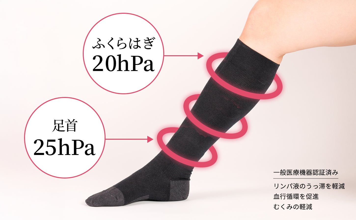 医療用ストッキングなどの高度な技術をベースに、履きやすさ・快適さ・機能性を追求した、毎日使える医療品質の着圧ソックスです。