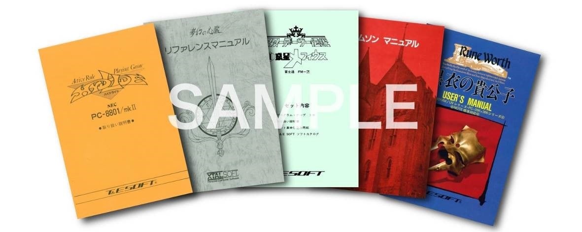 『惑星メフィウス』『ハイドライド』『夢幻の心臓』『クリムゾン』『ルーンワース ~黒衣の貴公子』の基本マニュアルを可能な限り再現し同梱!
