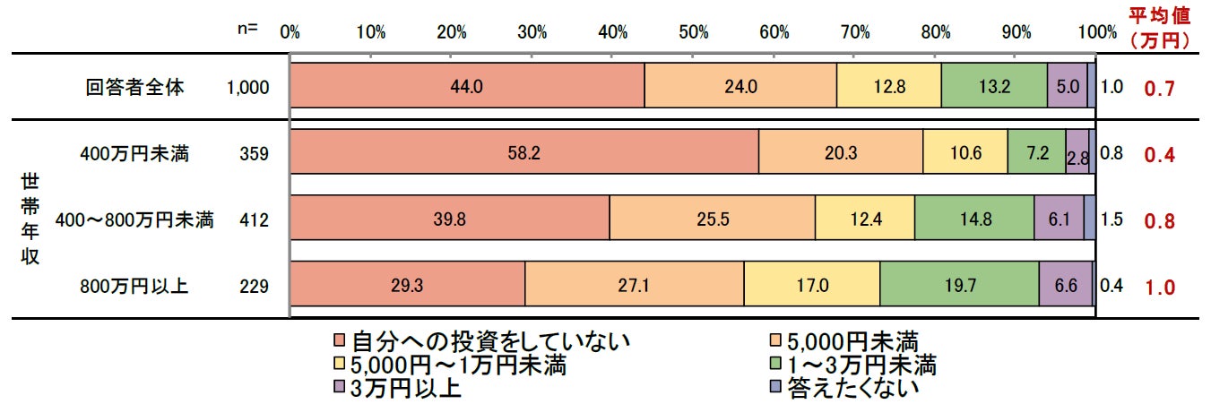 Q.あなたの毎月の自分への投資額をお答えください(単一回答)。