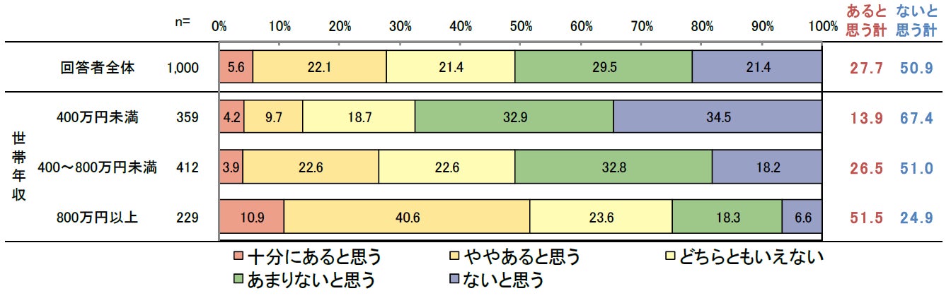 Q.あなたの現在の生活において、「経済的なゆとり」はあると思いますか(単一回答)。