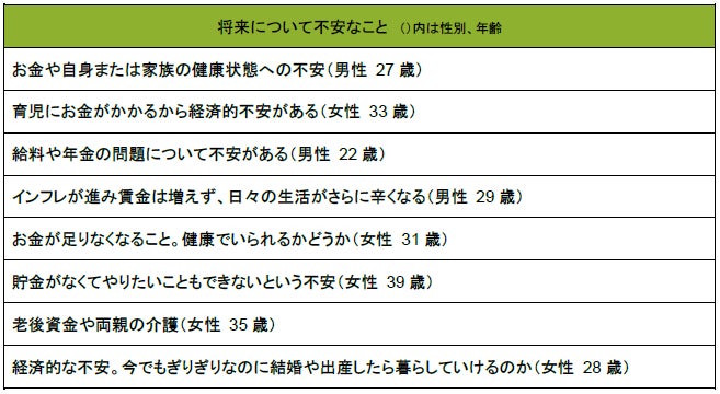 Q.ご自身の将来について、どのようなことに不安があるか教えてください。