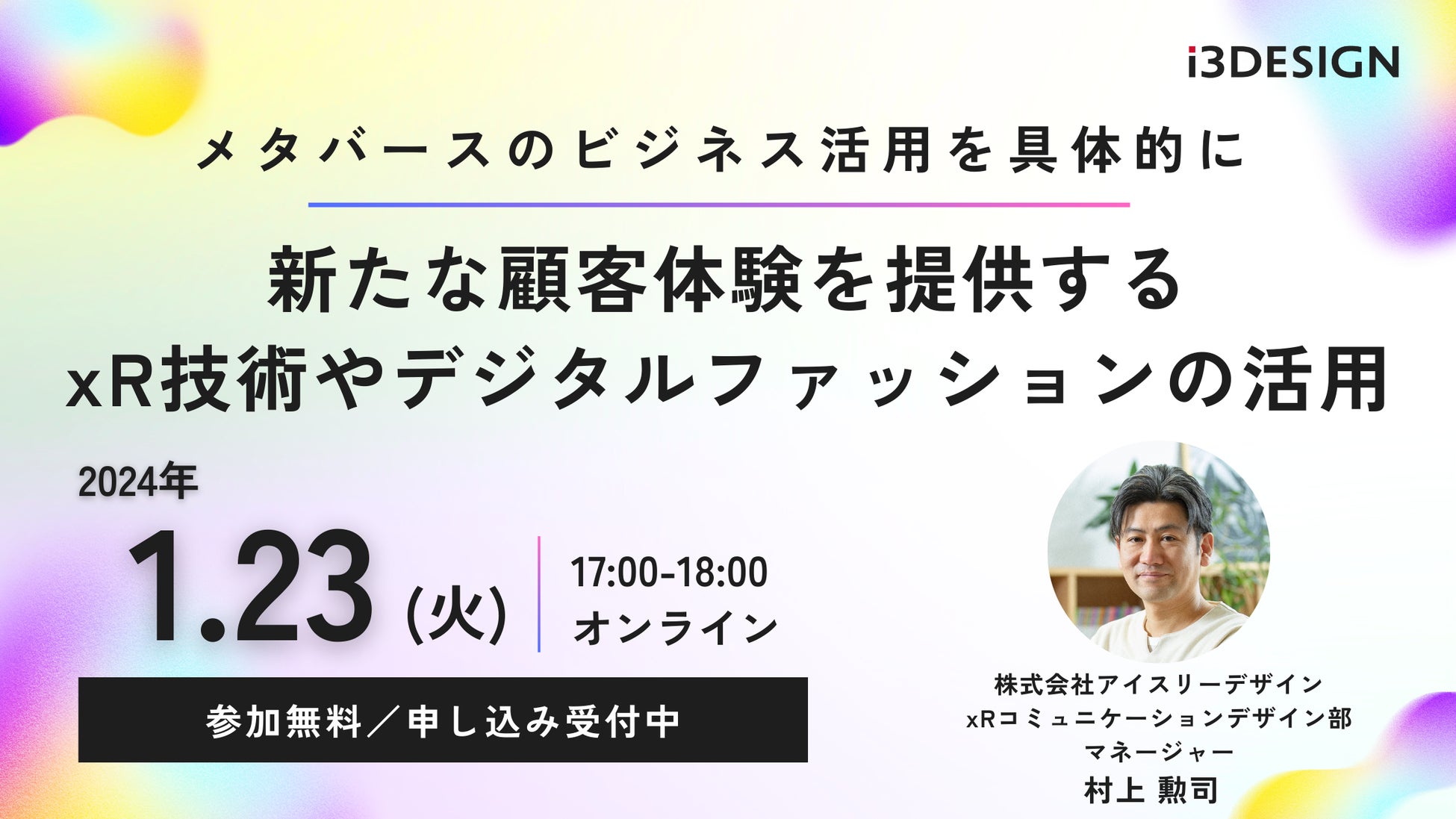 【2024/1/23(火)17時から開催】「メタバースのビジネス活用を具体的に〜新たな顧客体験を提供する xR技術やデジタルファッションの活用〜」をテーマにオンラインセミナー開催