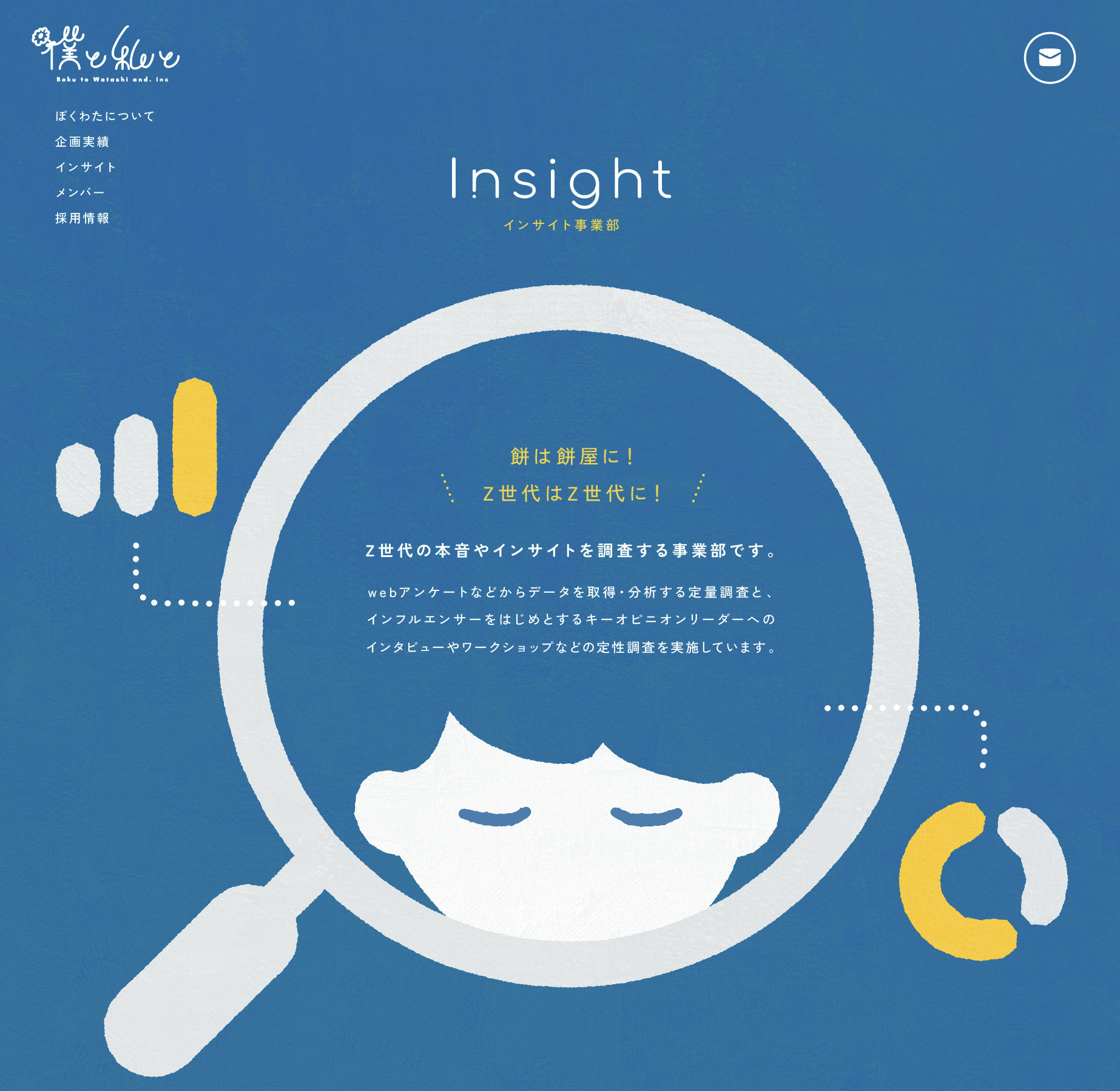 また、現在ぼくわたには50人もの仲間が在籍しています。それによって実績が増えたことや、新たにインサイト事業「Zview」を立ち上げたことにも伴い、より直感的にわかりやすいサイトを目指しました。