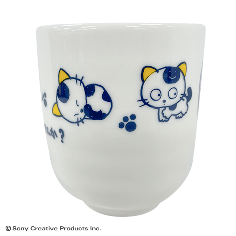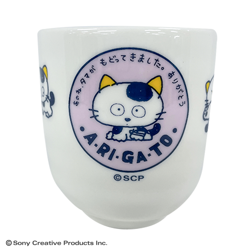 折りたたんでポーチにしまうとタマの顔になる「エコバッグ」、カードや通帳等が収納できる「マルチケース」や「ポーチ」、「湯のみ」の4アイテムです。