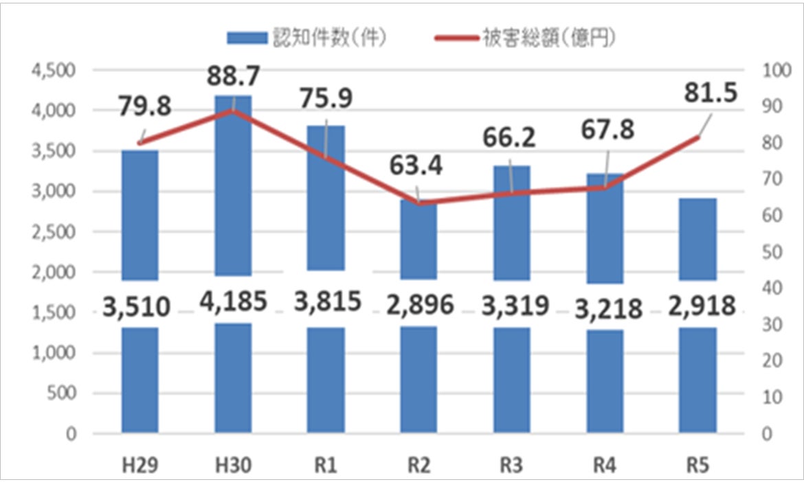 ※警視庁犯罪抑止対策本部 「令和5年における特殊詐欺の状況について」より作成