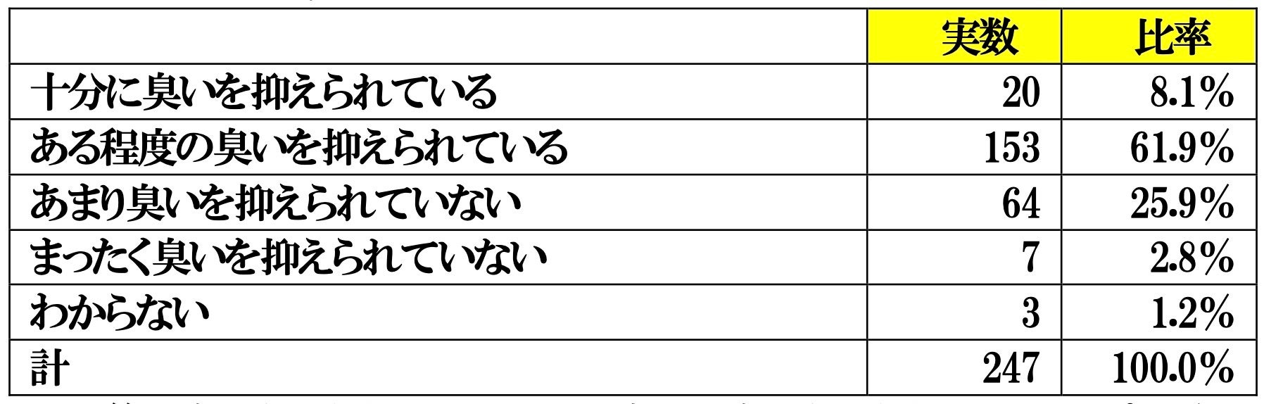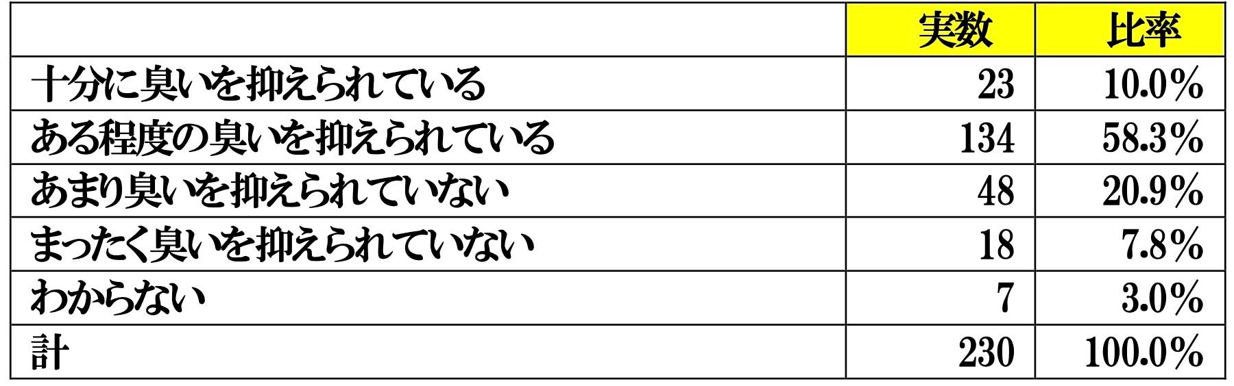 → 対策で臭いを抑えられているは,「十分に臭いを抑えられている」「ある程度の臭いを抑えられている」