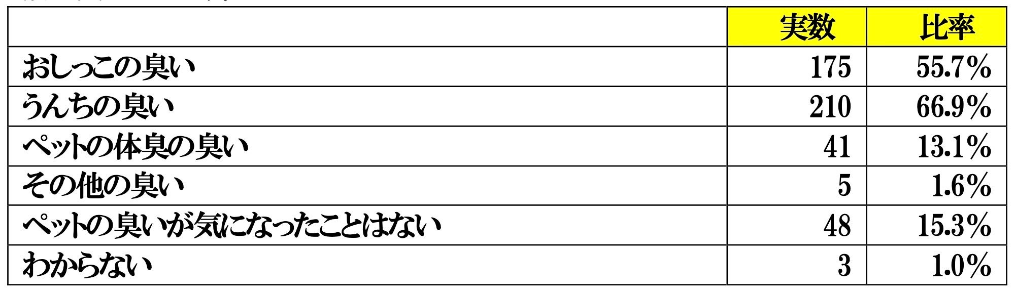 猫を飼っている方の気になる臭い=「うんちの臭い」(66.9%)、「おしっこの臭い」(55.7%)、