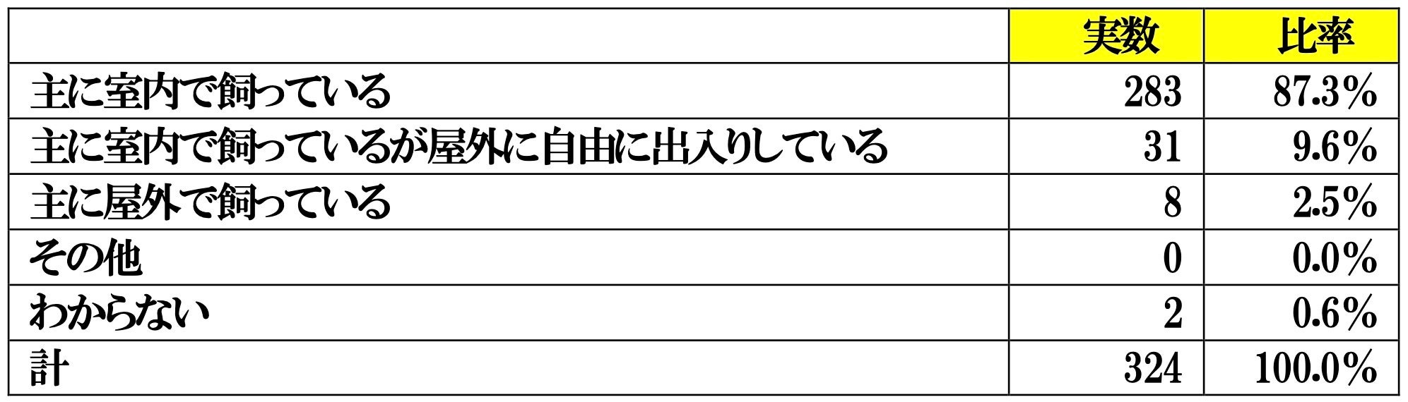 ※室内飼いとは、主に室内+主に室内だが屋外に自由に出入り可能