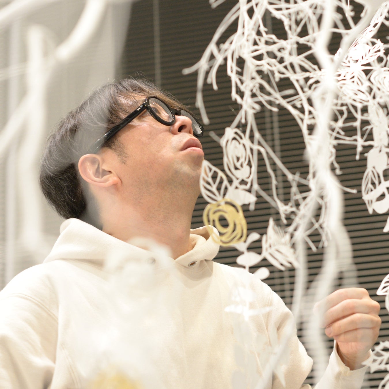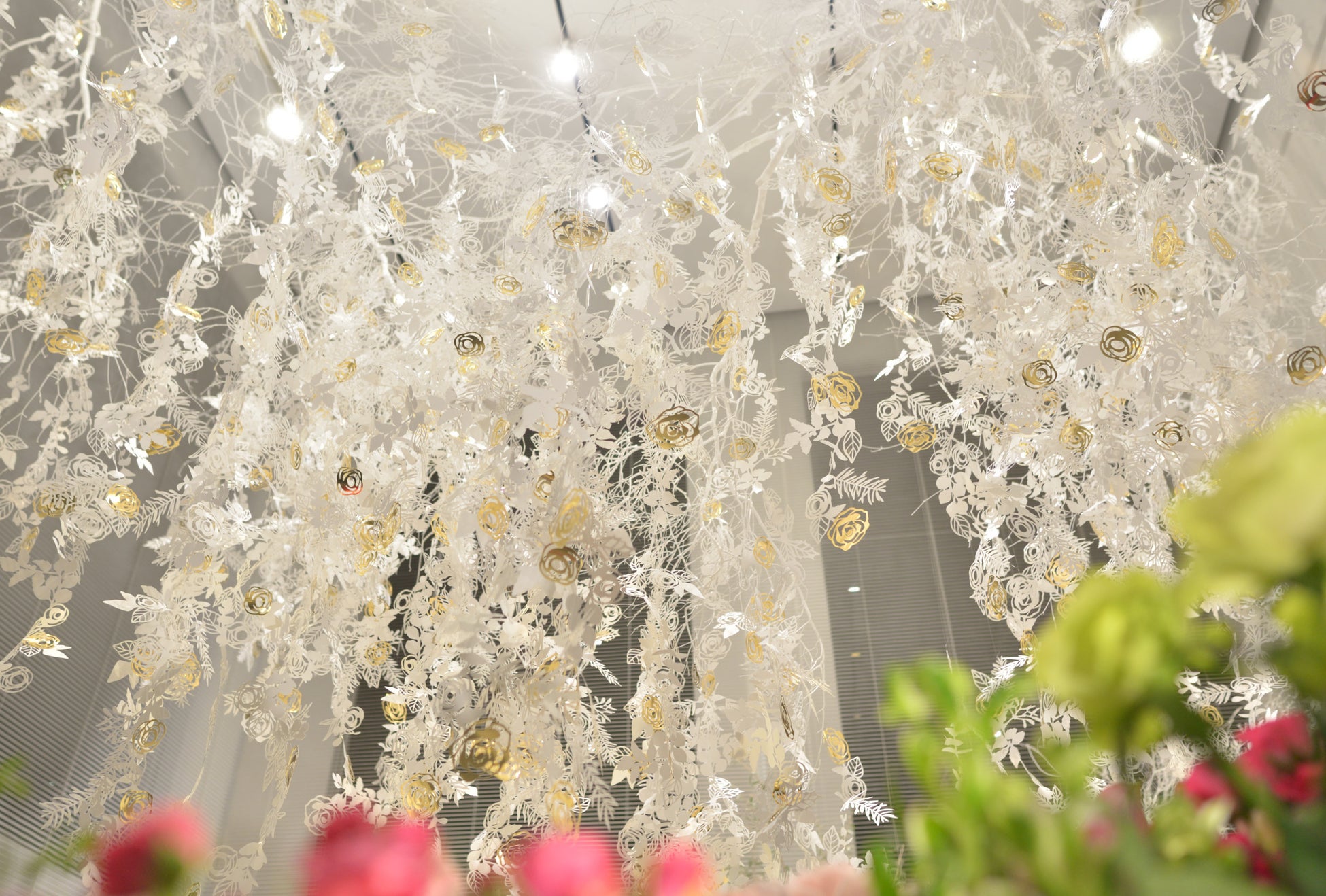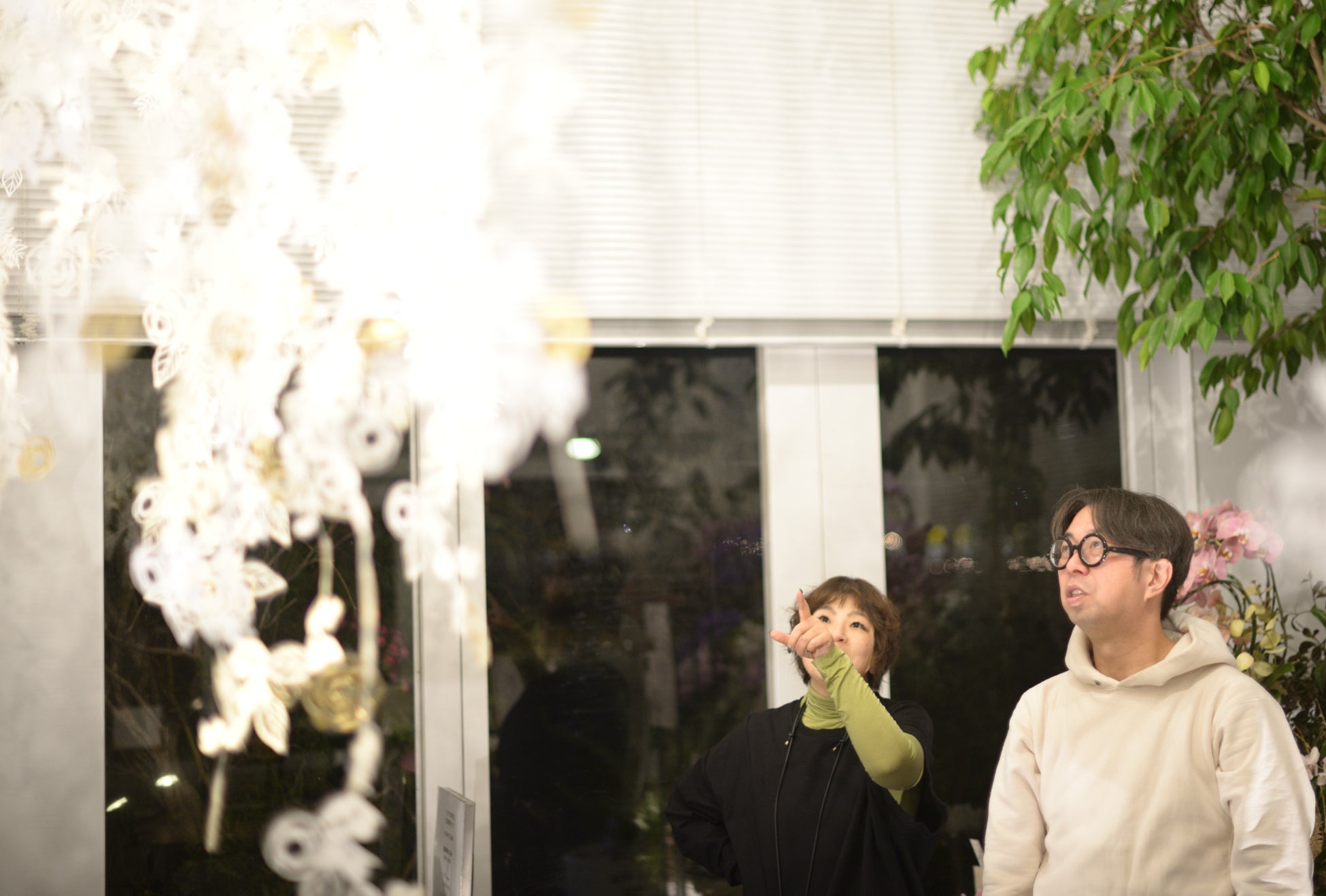 歴史ある日比谷花壇本店をペーパーアートで飾ることができ、大変嬉しく思います。クオリティ高い花々があることで、繊細な切り絵のガーランドがより際立ち、上質でクリエイティブな空間ができたと思います。自分としても新しい発見がたくさんありました。