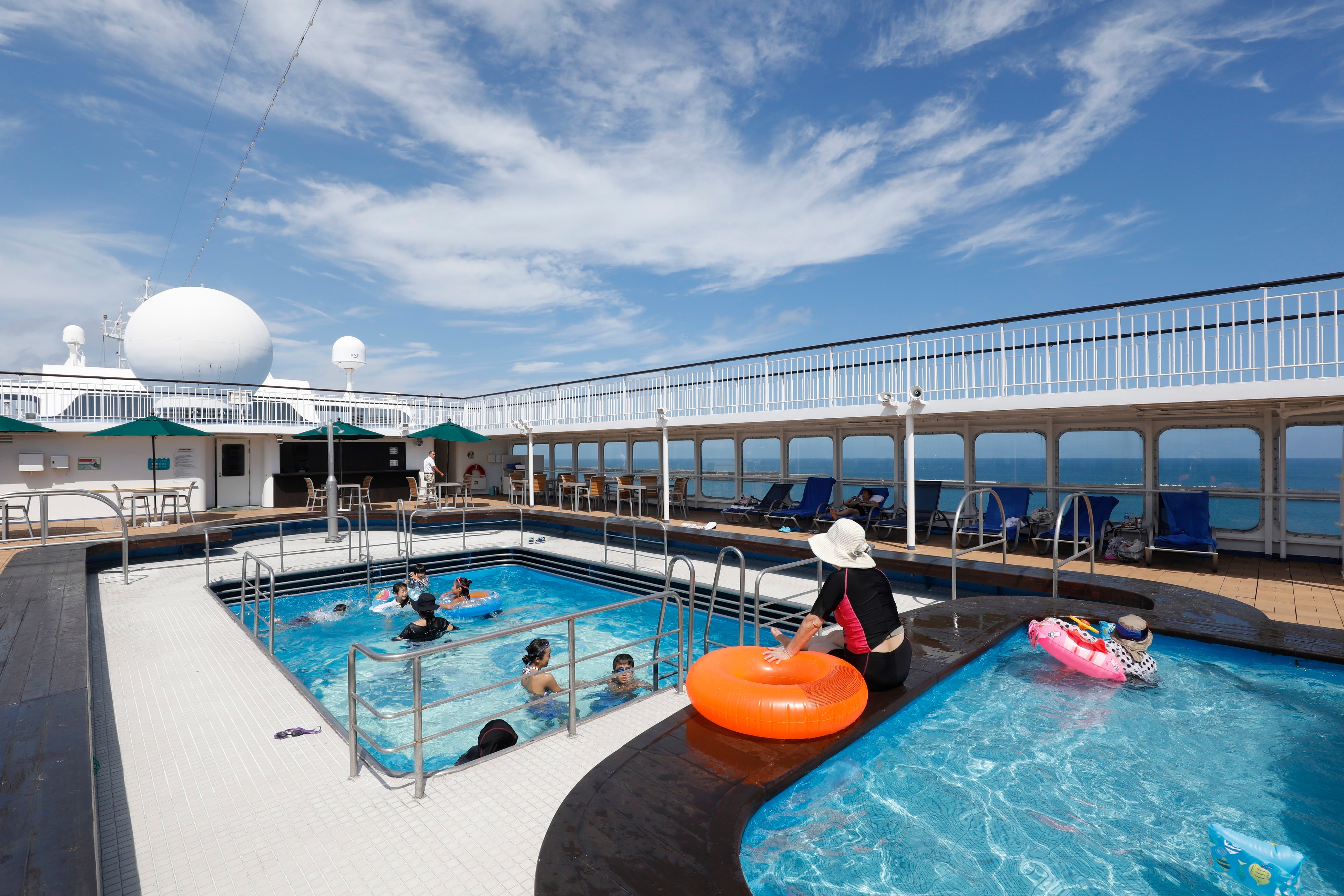 船上という特等席から見上げる花火、海の上のプール、デッキチェアでゆっくり日光浴、アイスクリームやかき氷(フリーメニュー)で暑さ撃退。などなど盛りだくさんです。