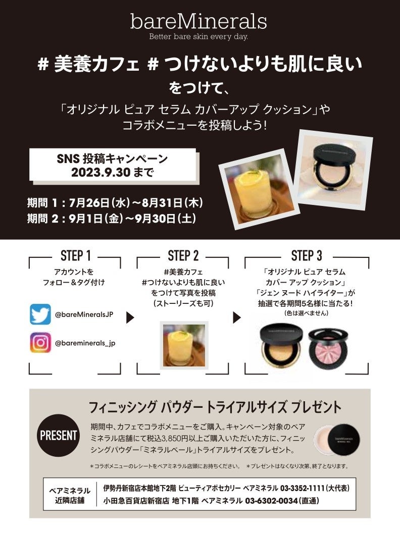 【ベアミネラル】“心と身体、肌を休めるクリーンビューティーな美養カフェ“~サステナブルなコラボメニューで体の中からキレイに。ベアミネラルのクッションファンデで「つけないよりも肌に良い*」肌ケアを~