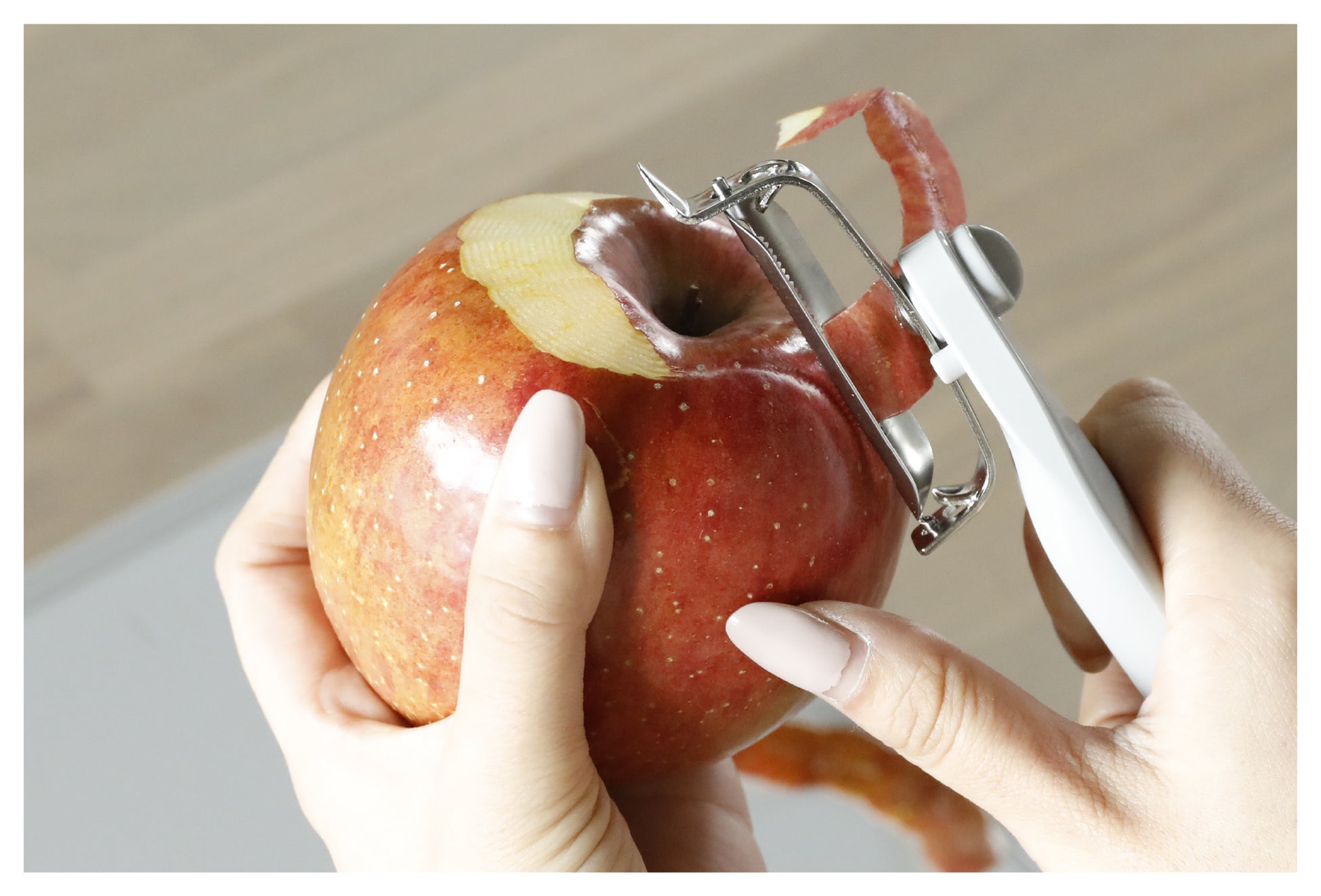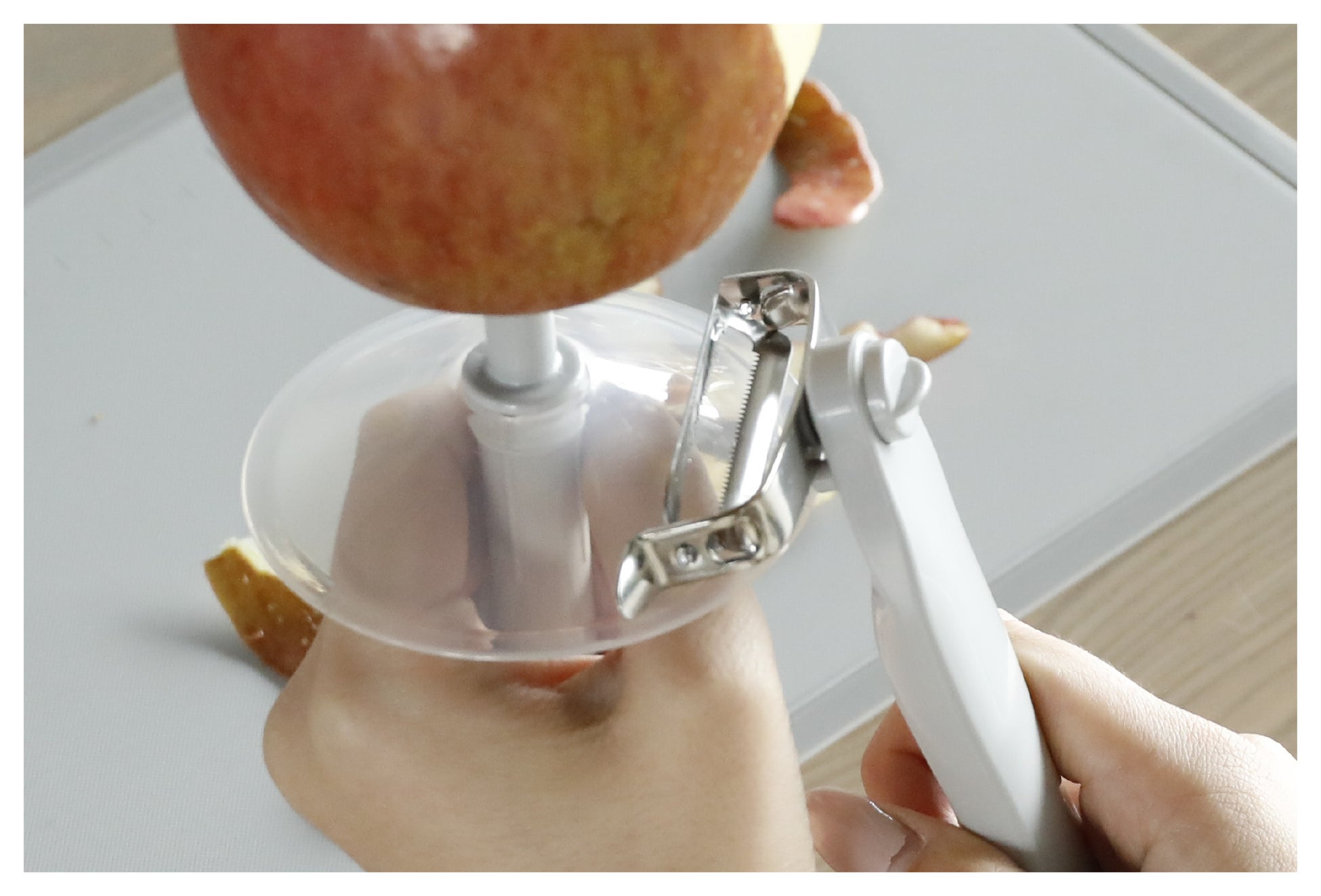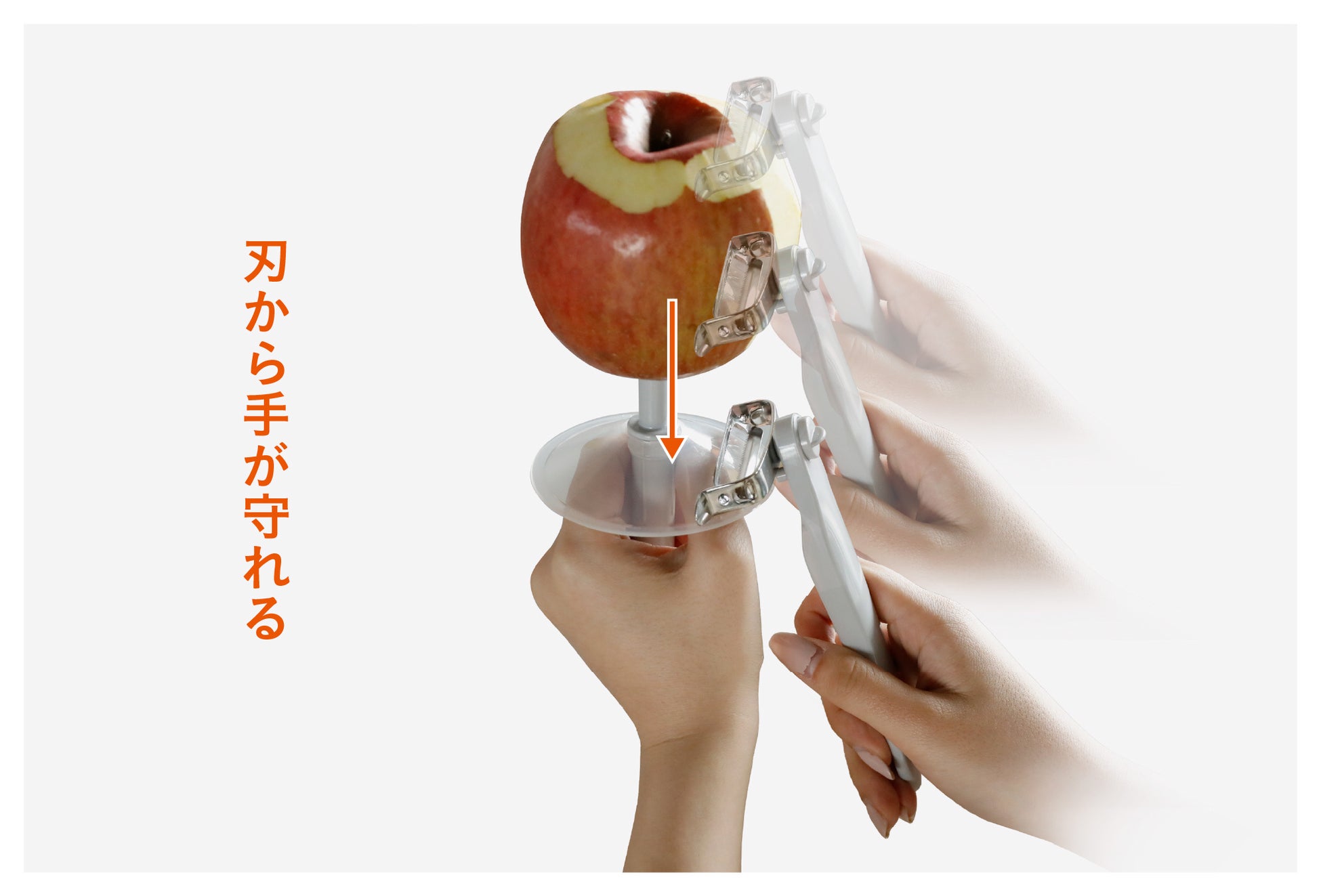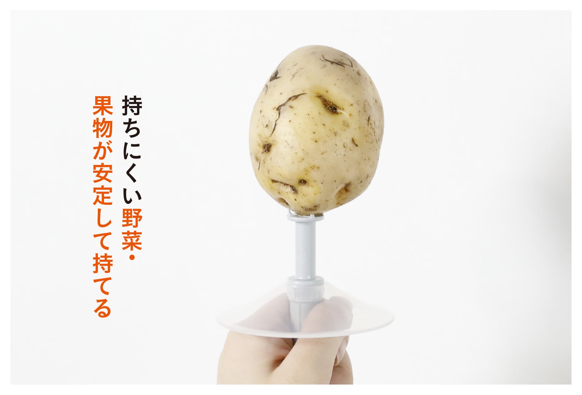 つかみにくく、ツルッと滑ってしまう食材や限界まで皮剥きをしたいときも、食材に本体を差し込むだけで、食材を安定して持つことが出来ます。