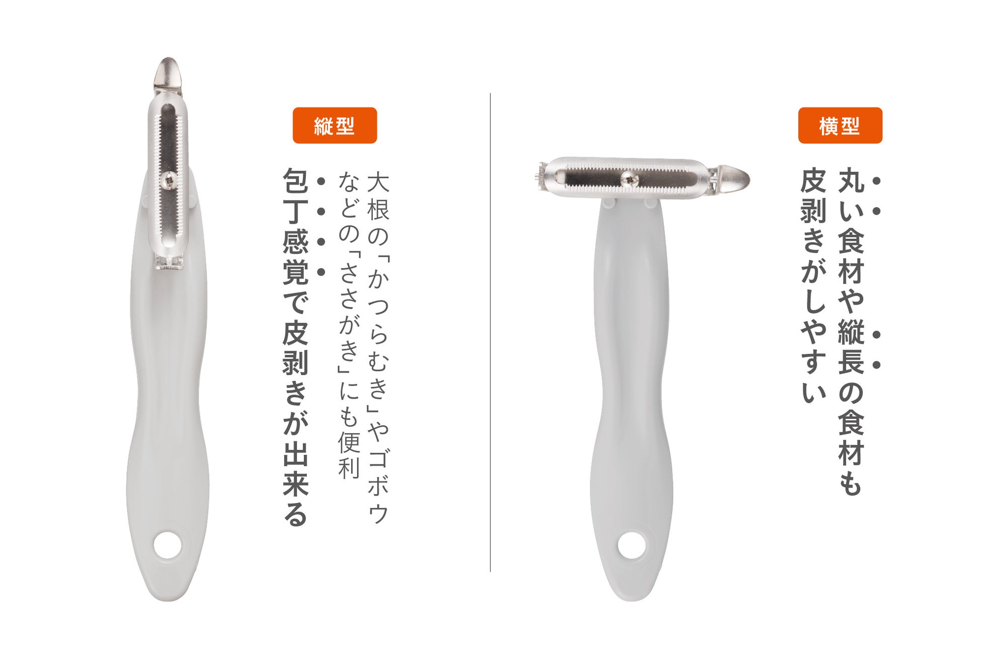 刃の向きを変えて「皮剥きがしやすいタテヨコピーラー」