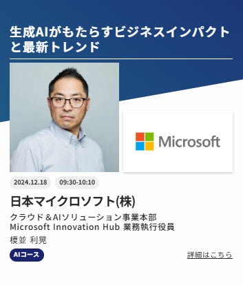 本セッションでは、マイクロソフトが提供する生成AIの最新トレンドとビジネス活用事例を紹介します。生成AIは効率化や価値創造において重要な役割を担い、具体的事例を通じて課題解決や競争力向上の方法を解説します。参加者は生成AIの基礎から実践的な応用まで幅広く学び、ビジネスでの活用アイデアを得ることができます。