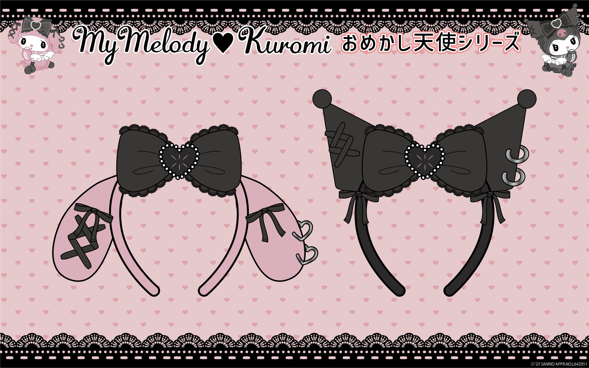 おめかし天使なマイメロディ・クロミになりきれるカチューシャ。センターの大きなビジュー&左耳のイヤーカフがポイントです♡
