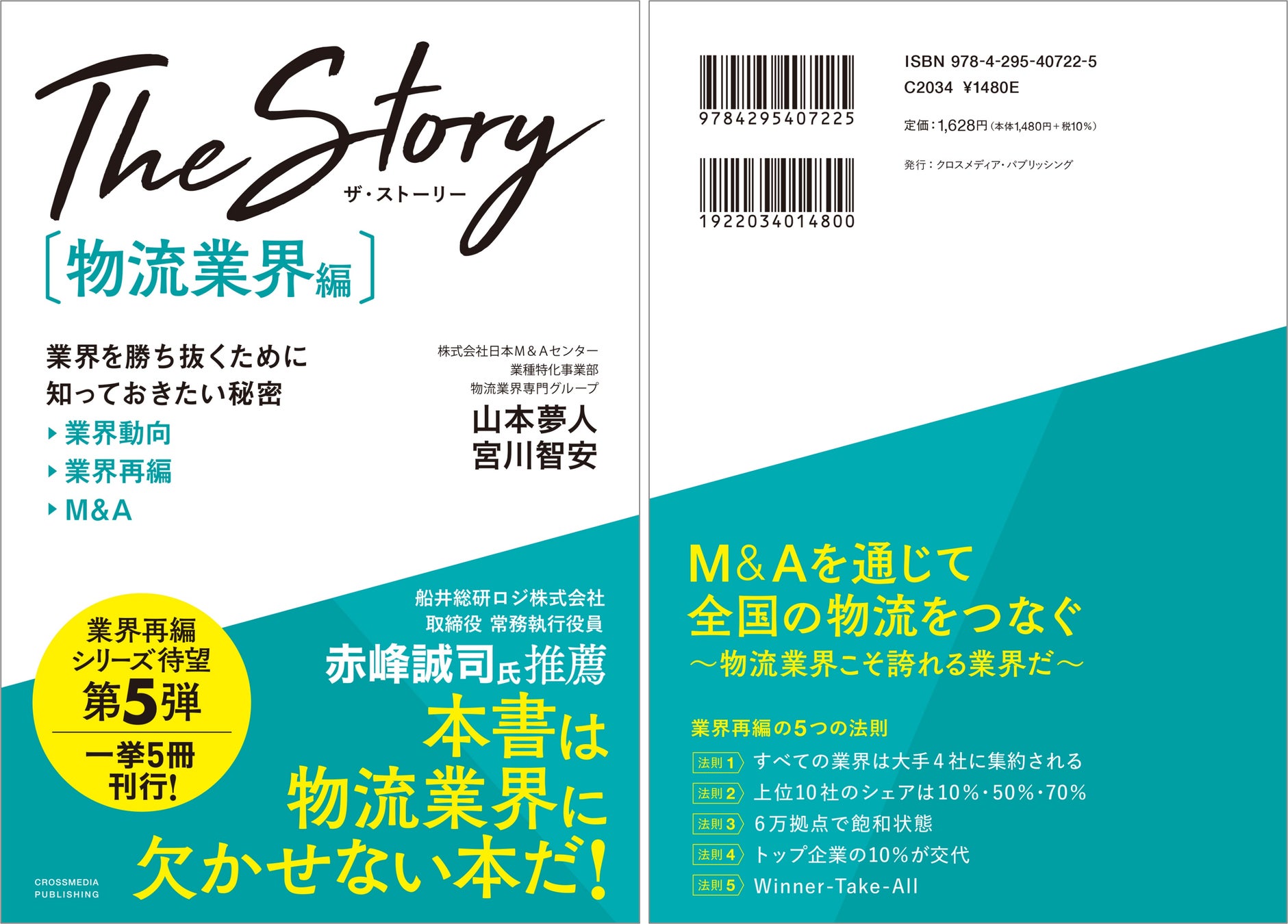 当社の連結子会社である株式会社日本M&Aセンター(以下、日本M&Aセンター / 本社:東京都千代田区 / 代表取締役社長:三宅 卓 / URL:https://www.nihon-ma.co.jp/)は、業界専門コンサルタントの経験とノウハウ、豊富な成約実績を基に網羅的にM&Aの情報をまとめた書籍『The Story[物流業界編] 業界を勝ち抜くために知っておきたい秘密 業界動向・業界再編・M&A』をクロスメディア・パブリッシングより2022年6月22日に発売いたしました。