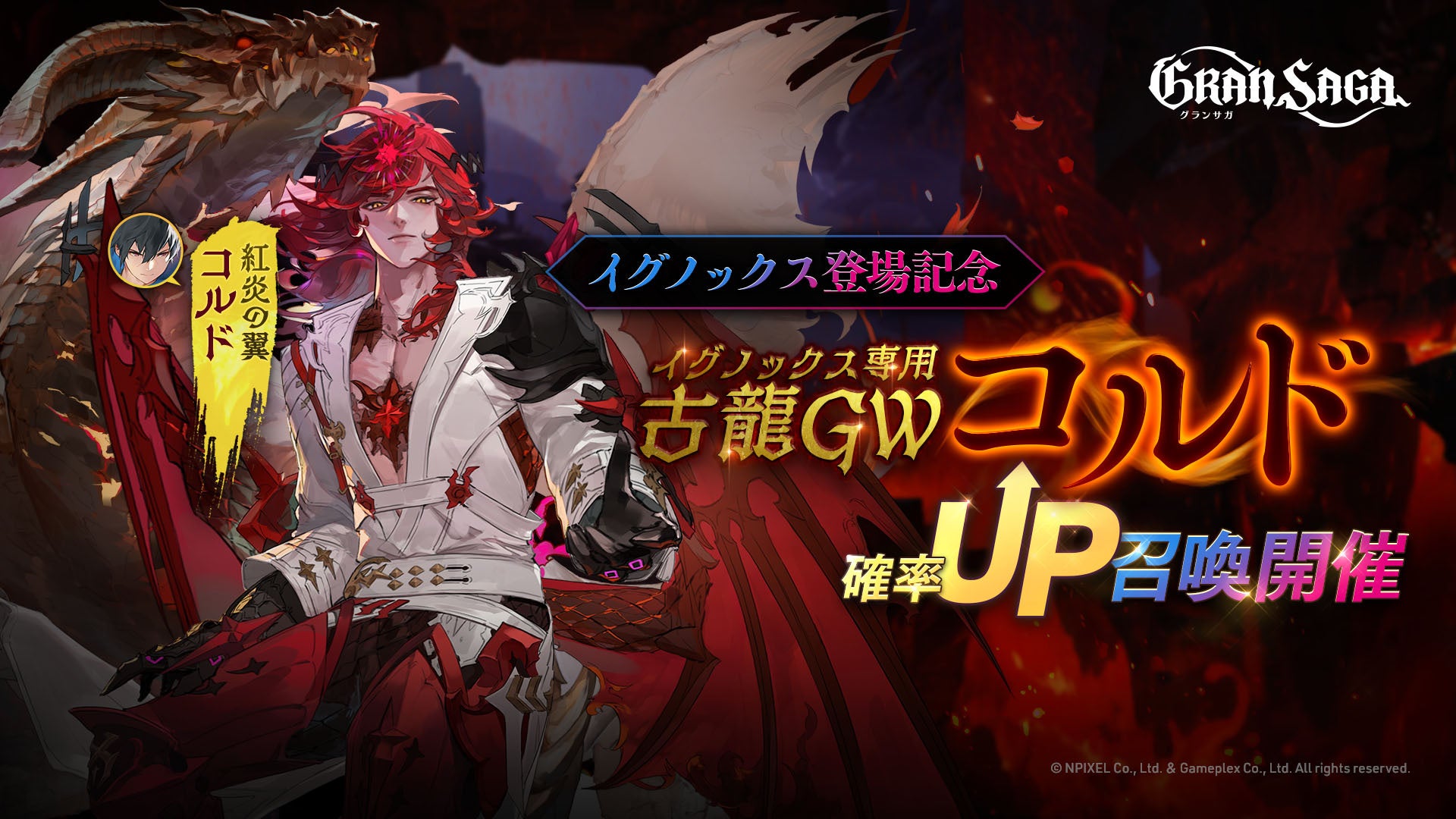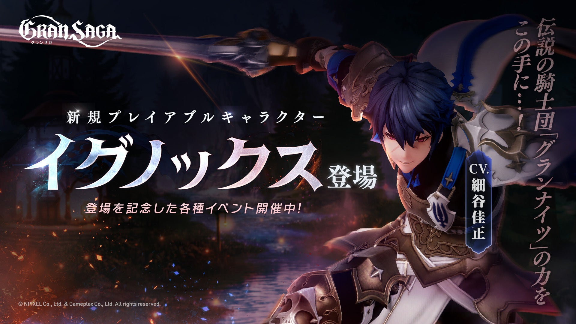 株式会社NPIXELは、シネマティックオンラインRPG 「グランサガ(Gran Saga)」(運営:株式会社GAMEPLEX)にて、伝説の騎士団グランナイツのメンバー「イグノックス(Cv.細谷佳正)」を実装いたしました!本日より期間限定で、イグノックスの登場を記念した三大キャンペーンを開催しております。