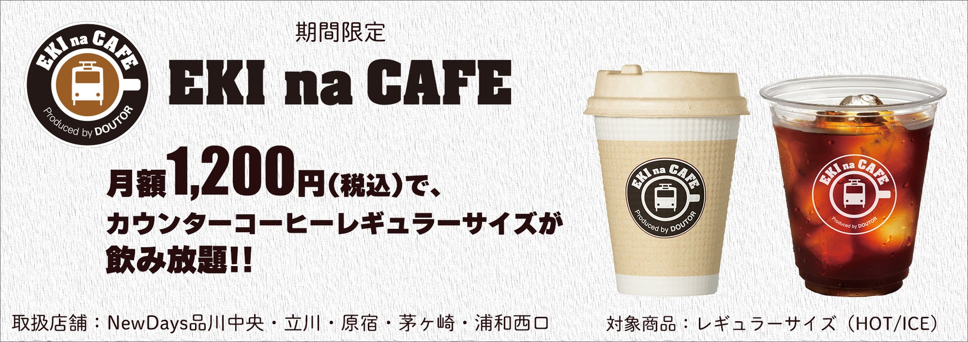内 容:対象のNewDays5店舗(品川中央・立川・原宿・茅ヶ崎・浦和西口)にて、会員証をご提示いただくと、期間限定でカウンターコーヒーレギュラーサイズ・HOT/ICE(通常100円)を無料で提供いたします。販売期間 2022年4月1日(金)~5月31日(火)