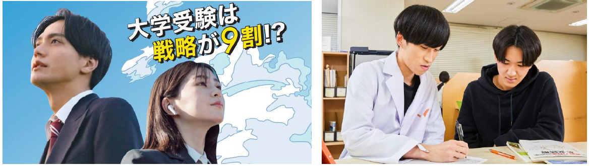個別戦略指導会では、長年の個別指導経験を持つ受験のプロが、のべ25時間の研修プログラムを修了した講師陣を率いて、生徒一人ひとりの志望大学や学力状況に応じ、授業時間だけでなく家庭学習を含めたすべての学習時間を可視化・サポート。関西エリアで培った知見と実績をもとに、広島の高校生に最適化した学習戦略を立案し、第一志望校合格を目指します。